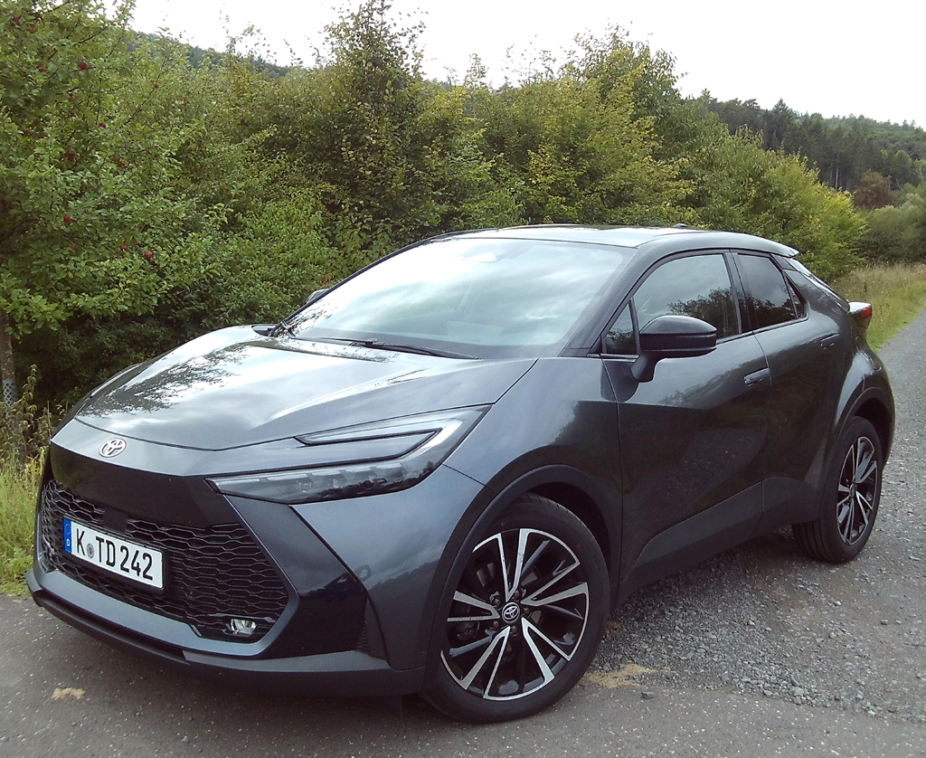 Sein Name steht für Coupé High Rider: Wir haben das kompakte Crossover-SUV-Modell C-HR von Toyota jetzt als frontangetriebenen Hybrid mit Automatik in Lounge-Ausführung zur Probe gefahren. Auto: Fünftüriger Fünfsitzer. Segment: Untere Mittelklasse. Produktion: Türkei. Eingeführt: 2016. Aktuell zweite Generation. Konkurrenten: Honda HR-V, Hyundai Kona, Kia Niro, Mazda CX-30, Skoda Karoq, VW Tiguan. Länge: 4,36 Meter. Breite: 1,83 Meter. Höhe: 1,56 Meter. Radstand: 2,64 Meter. Leergewicht: 1505/1770 Kilo. Design: Kantig. Nicht mehr ganz so polarisierend wie zuvor. Orientiert sich optisch an Modellen der Marke wie bZ4X und Prius. Verarbeitung: Ganz gut. Schließlich ist es ein Toyota. Anmutung: Für die Kompaktklasse standesgemäß. Innenraum: Mäßige Rundumsicht. Vorn ordentlich Platz. Hinten etwas beengter. Versenkbare Türgrife. Gepäckabteil: 430-1140 Liter. Könnte etwas praktischer sein. Cockpit: Digital. Bedienung: Eigentlich doch ziemlich schnell im Griff. Antrieb*: Vierzylinder-Benziner als Hybrid mit Elektromotor vorn und 197 System-PS. Kombiniert mit stufenloser Automatik. Fahren: Flott. Spritzig. Nicht zuletzt dank kräftigem Hybridstrang. Sicheres Fahrverhalten. Niedrige Anhängelast von 725 Kilo und geringe Zuladung. Fahrwerk: Relativ ausgewogen. Keineswegs unsportlich. Vorn spezielle MacPherson-Federbeine. Hinten Mehrlenkerachse. Lenkung: Könnte noch etwas direktere Rückmeldung geben. Bremsen: Packen standfest zu. Räder: 19-Zoll-Leichtmetall mit 225er-Reifen Ausstattung: Gleich mehrere Ausstattungslinien mit Lounge als mittlerer davon. Für die Kompaktklasse umfangreicheres Serien-, Sicherheits- und Komfortpaket mit wichtigen elektronischen Hilfen (www.toyota.de). Baureihe: Fängt preislich bei 33 990 Euro an, geht hoch bis 49 990 für den GR Sport. Sonst noch Hybrid mit 140 PS, 197-PS-Allradvariante und neuer Plug-in-Hybrid mit 223 PS. Fazit: Der C-HR ist erwachsen geworden. Hat wie Nissans Juke den rebellischen Auftritt abgelegt. Fast 43 000 Euro Anschaffungspreis, mit denen der Testwagen in diesem Fall vorfährt, sind aber auch nicht ohne.