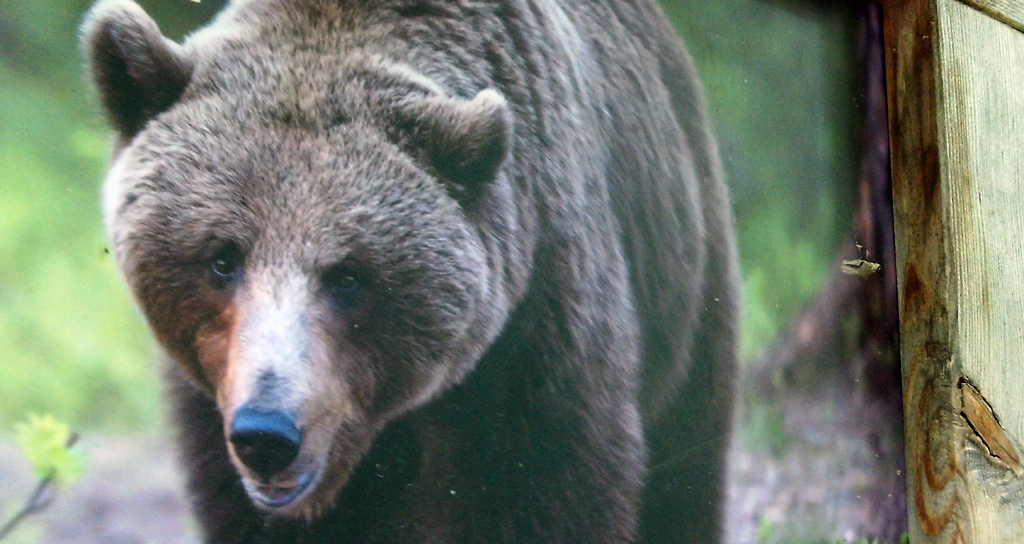 Die Wälder in der Region scheinen noch dicht bewachsen. Der Bär vom Warnplakat.