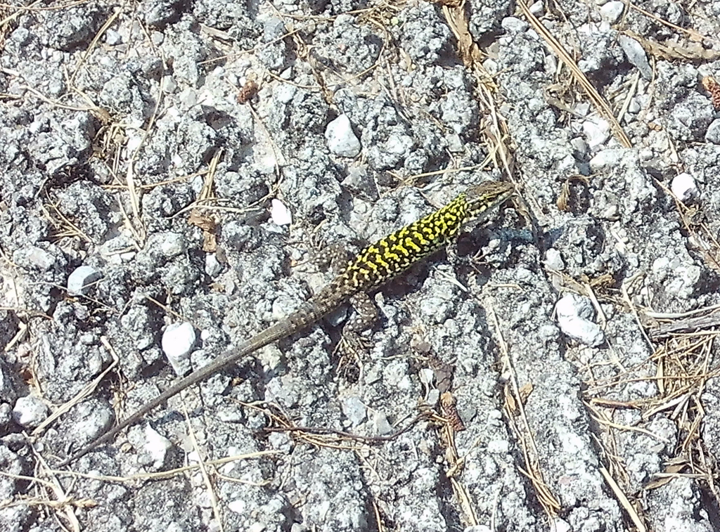 Tierische Begegnung auf dem Weg entlang des Bachs. Die grüne Natur tut gut.