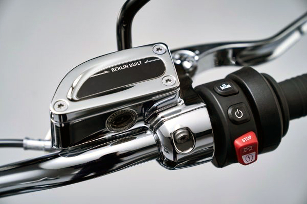 Bedieneinheit am Lenker. Im Tacho der ebenfalls in Berlin gebauten Maschine steht „Berlin built“.