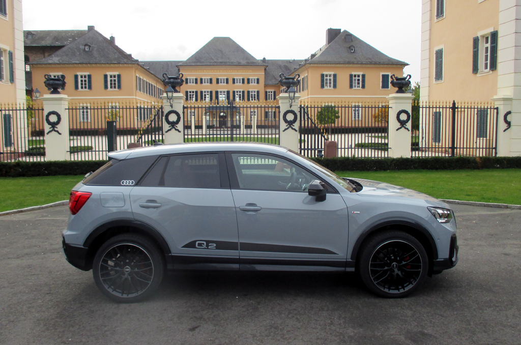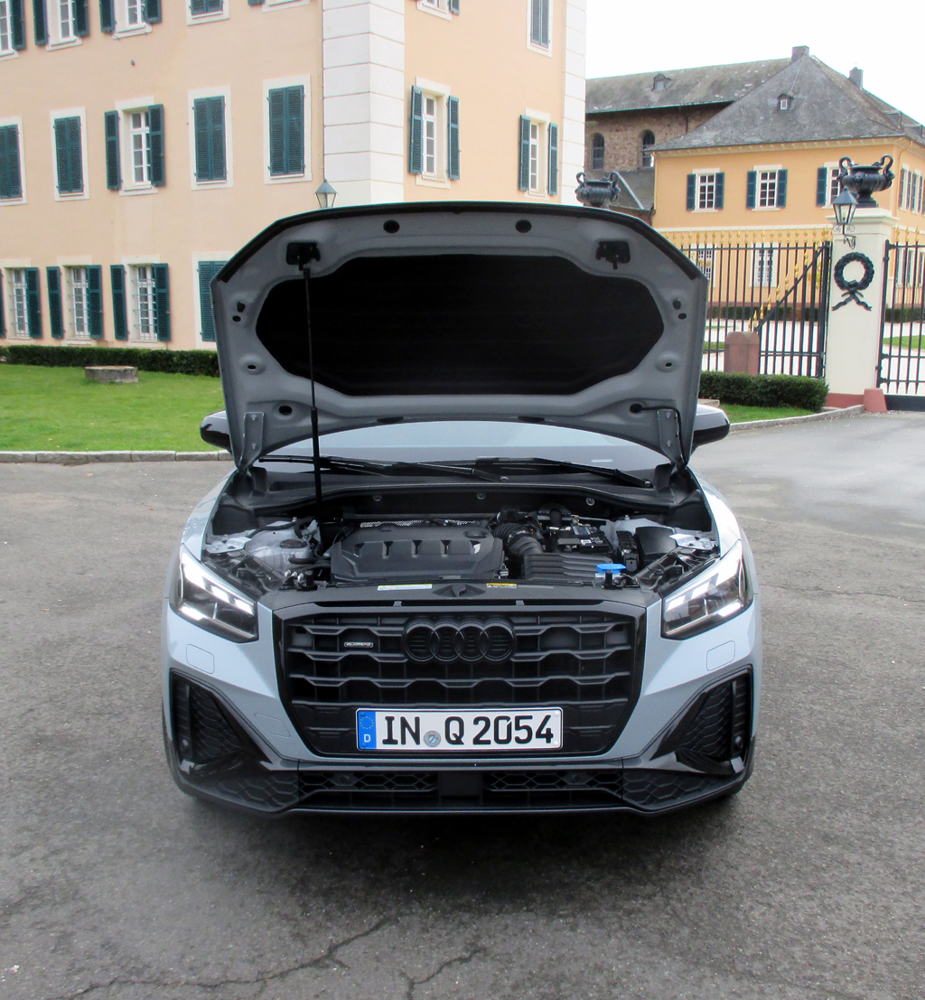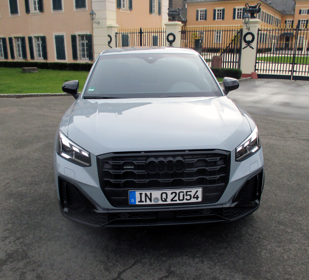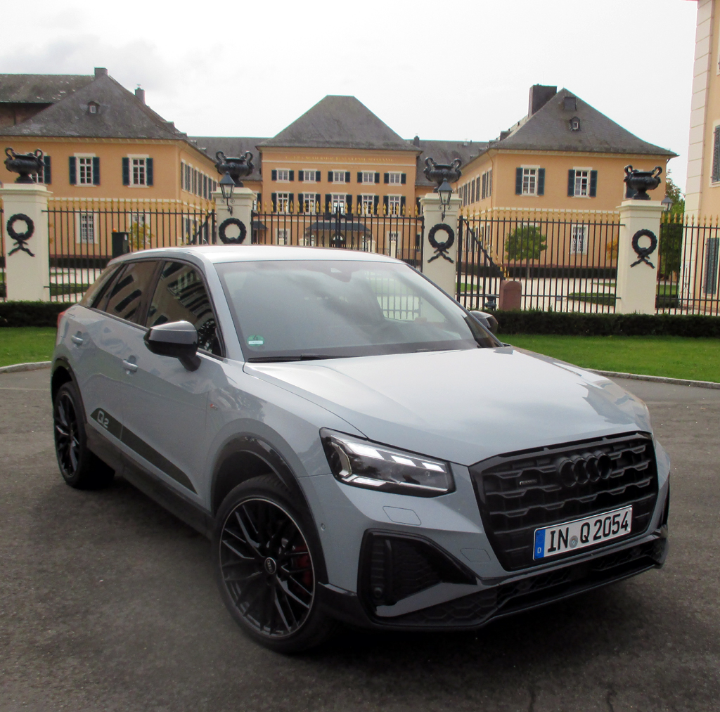 Das Auto: Der Q2 ist seit 2016 auf dem Markt, stellt das Einstiegsmodell in Audis mittlerweile hoch bis zum Q8 reichenden Q-Palette dar. Er hat in der Länge leicht auf 4,21 Meter zugelegt, während Breite, Höhe und Radstand mit 1,79, 1,54 und 2,60 Metern gleich geblieben sind. Ins Gepäckabteil passen je nach Motorisierung 355/405 bis 1000/1050 Liter. Außen sind Front und Heck nachgeschärft. Das Design mutet sportlich-gestreckter an. Es gibt Ecken und Kanten. Der etwas niedrigere Kühlergrill wirkt mehr in die Breite. Die Flächen unter den Scheinwerfern sind prägnanter ausgeformt. Die angedeuteten Lufteinlässe machen in ihrer Größe schon was her. In den Stoßfänger hinten ist auf beiden Seiten ein kantig gezeichneter Diffusoreinsatz mit großen Fünfecken integriert. Ein- und Ausstieg gestalten sich bequem. Innen, wo es im Fond für größer Gewachsene doch etwas beengter zugeht, genießt man gute Rundumsicht, fühlt sich wohl. Im modernen Cockpit geht es übersichtlich zu. Für die Eingewöhnung in die Bedienung sollte man sich Zeit nehmen, um alles sinnvoll nutzen zu können.