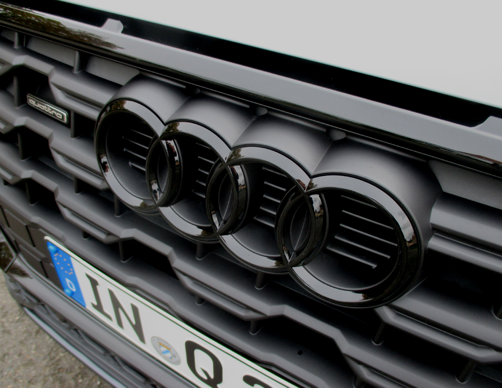 Blick auf die Frontpartie mit den vier Markenringen, hier in Schwarz, im Kühlergrill.