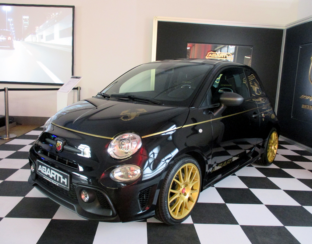 Der 595 Scorpionero erinnert an den „Goldring“-Abarth. Das Logo der Marke ist der Skorpion.