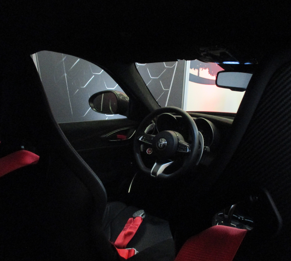 Blick ins vom Rennsport inspirierte Cockpit des Zweisitzers Giulia GTAm in konsequenter Leichtbauweise.