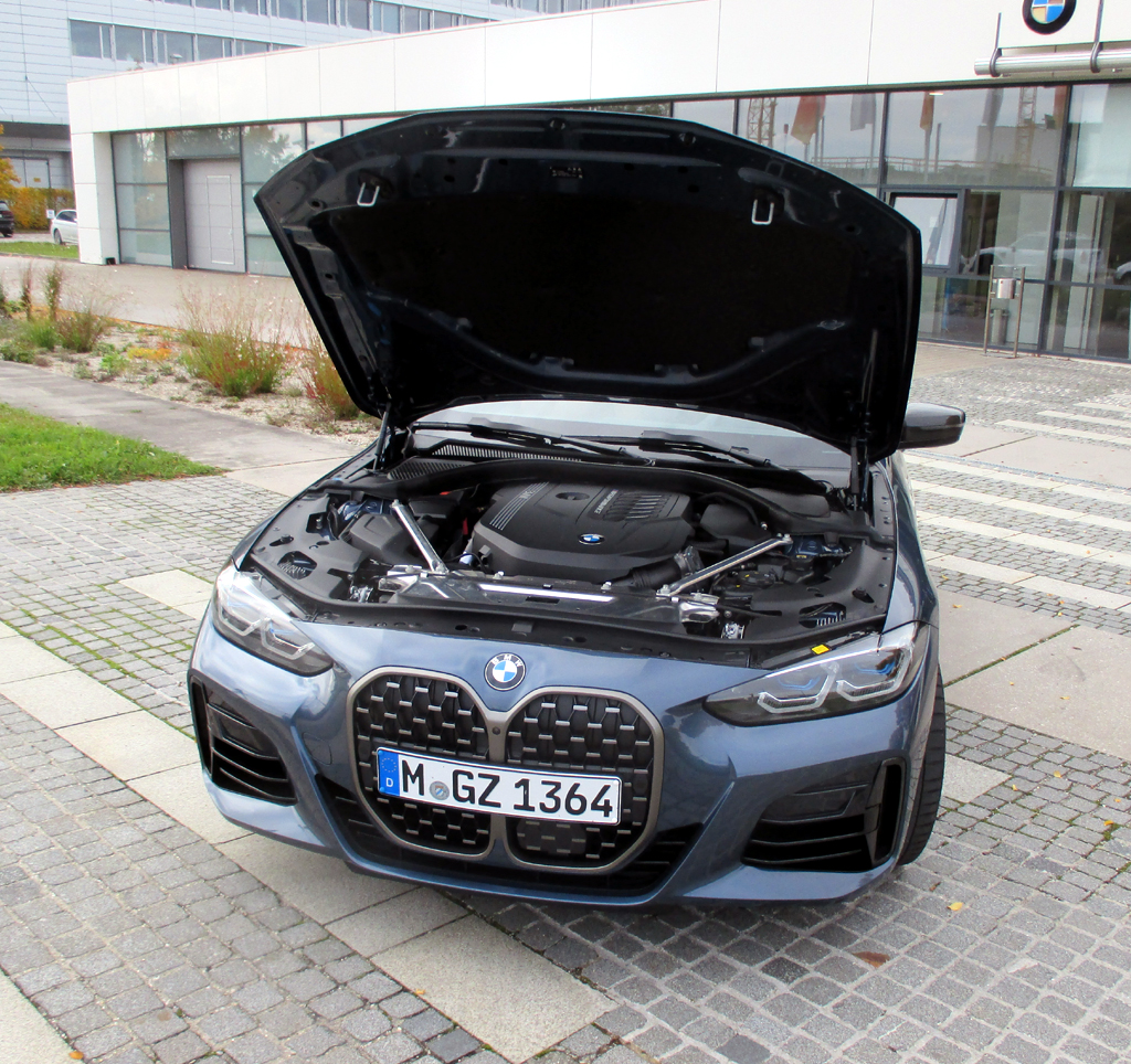 Das Auto: Ziel bei der Entwicklung der neuen Generation des zweitürigen Viersitzers, 4,77 Meter lang, 1,85 Meter breit, 1,38 Meter hoch, Radstand 2,85 Meter, Kofferraum 440 Liter, ist gewesen, sie noch klarer gegenüber dem 3er zu differenzieren. Was nicht zuletzt in der markanteren Front mit der wuchtiger anmutenden, aufrecht stehenden und optisch den Wagen nach unten drückenden Doppelniere zum Ausdruck kommt, an die man sich anfangs vielleicht noch etwas gewöhnen muss, die aber durchaus in die Tradition bisheriger legendärer Coupés der Marke passt, zudem praktisch dem höheren Kühlluftbedarf der Antriebstechnik dient. Die Flächen sind klar gestaltet, die Proportionen typisch für diese Art von Auto. Die Seitenfenstergrafik wirkt gestreckter, die Schulterpartie kraftvoller modelliert. Die fließende Dachlinie hat was Athletisches und was Elegantes zugleich. Innen geht es gewohnt sportlich-funktionell zu. Vorn gibt's ordentlich Platz. Im Fond ein- und auszusteigen, das verlangt etwas Geschick. Nach hinten bleibt die Sicht eingeschränkt.