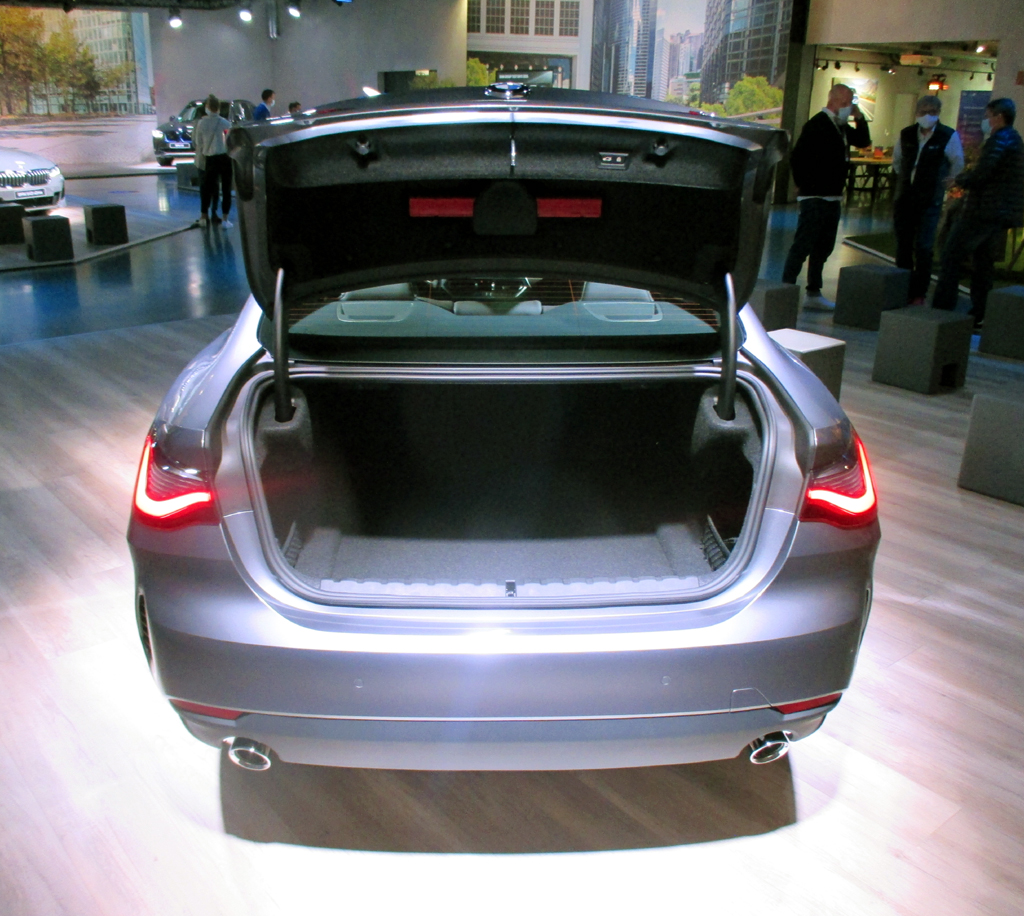 Das Gepäckabteil fasst 440 Liter. Heck-/Seitenansicht des zweitürigen Viersitzers.