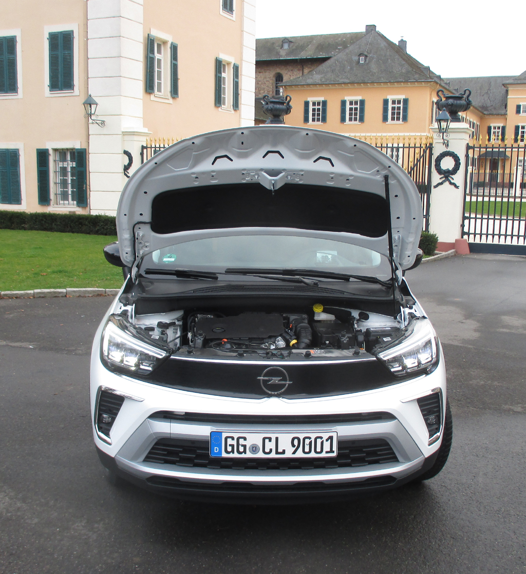 Das Auto: Opel hat das markenintern unterhalb vom Grandland positionierte Modell 2017 eingeführt. Rund 350 000 Einheiten sind seitdem international, rund 80 000 national verkauft. Mit dem Crossland, sauber verarbeitet, recht wertig anmutend, außen wie innen mit farblichen Akzenten, 4,21/4,22 Meter lang, 1,82/1,97 Meter breit, 1,60 Meter hoch, Radstand 2,60 Meter, Kofferraum 410/520 bis 1255 Liter, setzen die Rüsselsheimer auf Funktionalität, Geräumigkeit, flexibles Inneres etwa durch verschiebbare Rücksitze und auf verbesserte Effizienz in Sachen Antrieb, während der rund 1000 Euro teurere Mokka eher Richtung Ausdrucksstärke und urbanen Lifestyle mit mehr Personalisierungsmöglichkeiten geht, zudem in einer vollelektrischen Version angeboten wird. Auch der Crossland fährt nun mit dem erstmals vom Mokka gezeigten neuen Opel-Gesicht vor. Man sitzt gut. Die Rundumsicht ist ordentlich. Das moderne Cockpit wirkt ebenfalls klarer strukturiert. Durch die übersichtliche Gestaltung bleibt die Bedienung eigentlich Opel-typisch rasch im Griff.