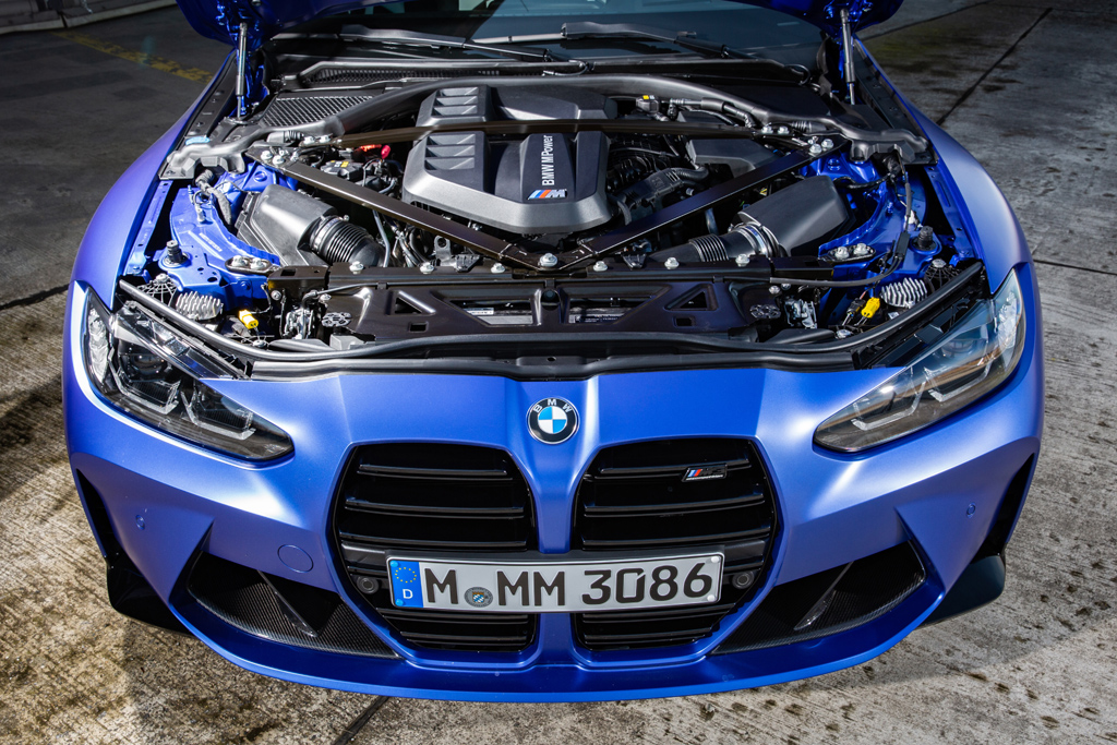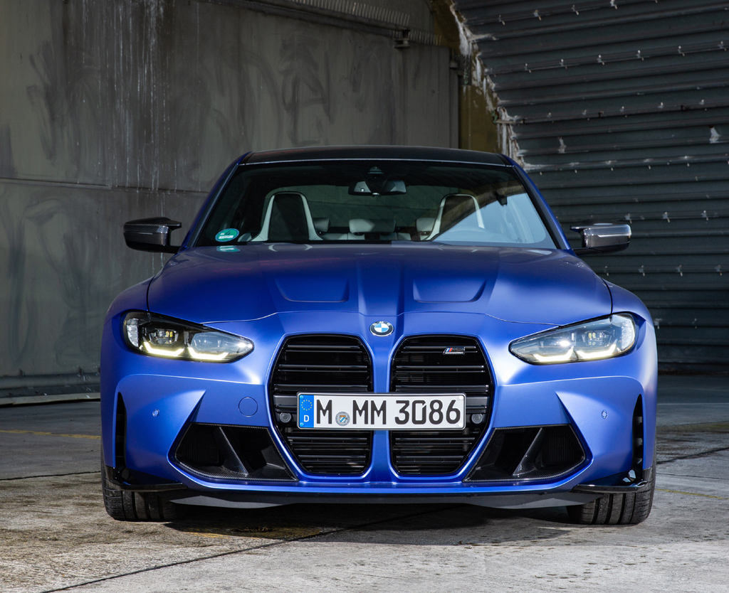 Das Auto: Der M3 ist das Sportmodell des 3er im Mittelklasse-Premiumsegment. Seit 1986 gebaut, stellt der viertürige Fünfsitzer die besonders leistungsstarke Variante des Serienfahrzeugs dar. Aktuell steht die sechste Generation am Start, 4,79 Meter lang, 1,90 Meter breit, 1,43 Meter hoch, Radstand 2,85 Meter, Kofferraum 480 Liter. Das Fahrzeugkonzept ist laut Hagen Franke „konsequent auf Performance ausgerichtet“. Die Abstimmung habe parallel zum Testprogramm für das neue M4-GT3-Rennfahrzeug stattgefunden, sagt der Produktmann bei der Fahrvorstellung gerade in Garching sowie auf dem BMW-Driving-Experience-Areal in Maisach. Optisch prägnant ist als neues Markengesicht der wuchtige, vertikal ausgerichtete Kühlergrill, der den Wagen förmlich auf die Straße zu drücken scheint. Die Radhäuser mit markanten Kiemen sind kraftvoller modelliert, die Seitenschweller mit Anbindung an Front- und Heckschürze weit ausgestellt. Das Karbon-Leichtbauddach verfügt über aerodynamisch optimierte Finnen. M-typisch sind die Endrohrpaare. Das Sportwagen-Cockpit mit M-spezifischen Anzeigen und Bedienelementen ist ergonomisch optimiert. Die Sportsitze sind neu entwickelt.