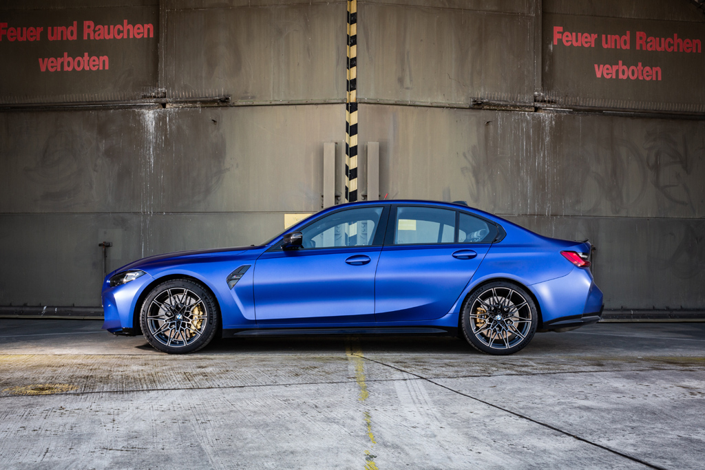 Modellkennung auf der Heckklappe. Und so sieht die M3 Limousine von der Seite aus.