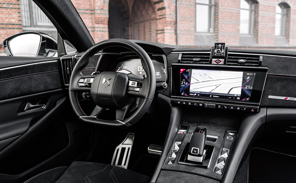 Die Ausstattung: Zwei Hauptlines gibt es. Sie heißen Performance und Rivoli. Im Basispaket sind etwa schon Active LED-Vision, Zweizonen-Klimaautomatik, 12,3-Zoll-Digitalkombidisplay, Audiosystem, 12-Zoll-Touchscreen, Navigation, Smartphone-Einbindung, Pedale mit Aluminiumapplikation, Geschwindigkeitsregelung samt Begrenzer, Müdigkeits-, Totwinkelwarner, Rückfahrkamera, Notbremsfunktion, Radfahrer-, Fußgänger-, Verkehrszeichenerkennung und Spurhaltehilfe enthalten. In dem darüber sind zusätzlich Tempomat mit Stop-&-Go-Funktion, Überwachung der Augen mit Infrarotkamera, 360-Grad-Rückfahrkamera und spezielle Sicherheitsfeatures an Bord. Wer will, kann die sensorgesteuerte Heckklappe oder ein elektrisches Schiebedach ordern. Inspirationen nennen die Franzosen die Möglichkeiten, den DS9 außen wie innen zu individualisieren. Nicht nur Ledersitze im ausgefallenen Uhrenarmband-Look-Finish sind zu haben. Im Rivoli-DS9 thront serienmäßig auf der Armatur auch ein eigens für die Marke designter Chronograph aus einer Manufaktur bei Paris. Als Reminiszenz an die historische DS gelten an der Dachkante die seitlichen Positionslichter in Trichterform.