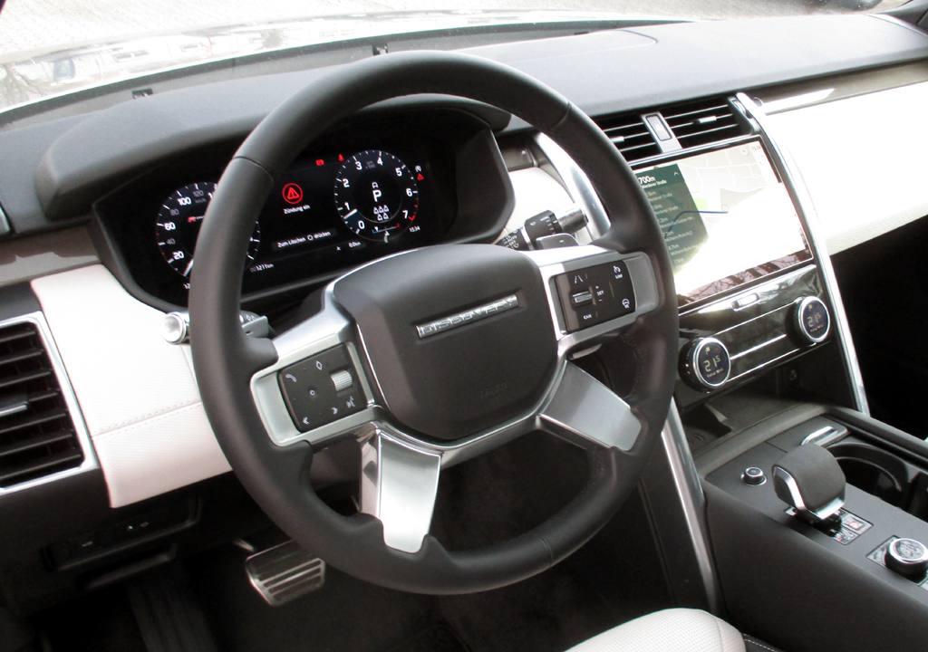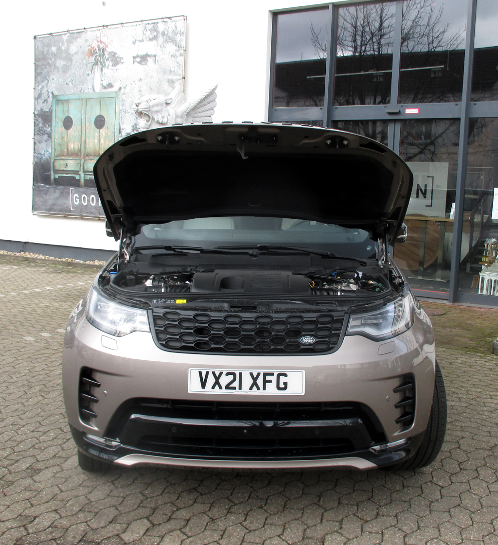 Das Auto: Den Discovery gibt es schon seit 1989. Die nun aufgefrischte fünfte Generation des bis zu siebensitzigen SUV ist seit 2017 am Start, 4,95 Meter lang, 1,88 Meter hoch, 2,00/2,07 Meter breit, Radstand 2,92 Meter, Kofferraum als Fünfsitzer bis zu 2485, als Siebensitzer 258 bis 1954 Liter. Außen, erläutert Michael Küster, sind die Änderungen im Rahmen der Überarbeitung von den markanter gezeichneten LED-Scheinwerfern und LED-Heckleuchten bis hin zu den modifizierten Stoßfängern eher moderat geblieben. Unter der Haube habe sich dagegen, so der Markensprecher, eine ganz Menge getan. Innen ist die Mittelkonsole neu gestaltet. Das Infotainment mit dem 11,4-Zoll-Touchscreen ist dank deutlich weniger Bedienschritte endlich intuitiver und damit leichter handhabbar. Die Vernetzung samt Möglichkeit der Software-„Over the air“-Updates hat sich verbessert. Die Sitze in Reihe zwei sind komfortabler. Und ein neues System zur Ionisierung der Innenraumluft mit Spezialfilter macht die Luft sauberer, indem es schädliche Partikel entfernt.