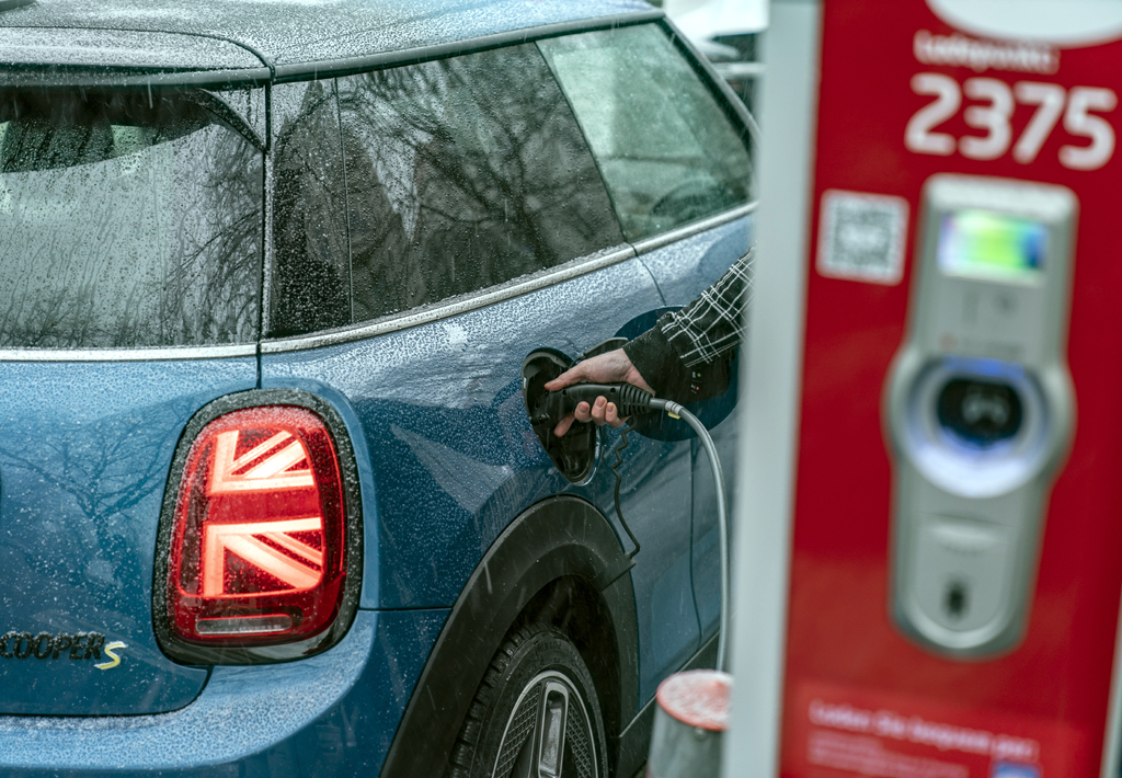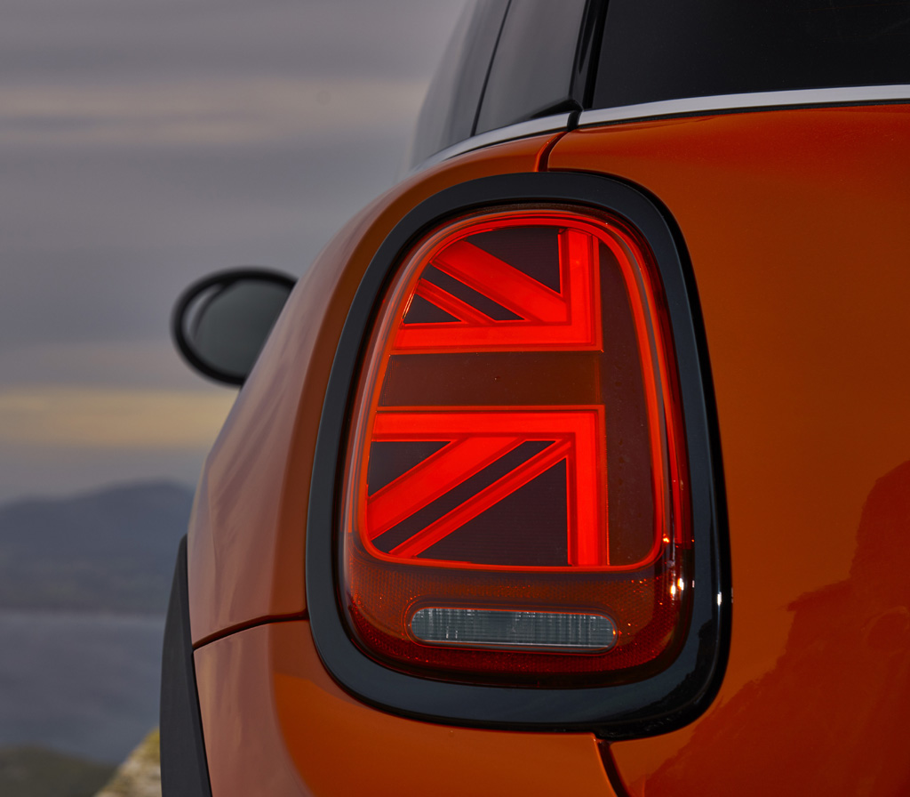 Der Dreitürer gehört zu Mini Electric & Friends. Heckleuchten im Union-Jack-Look sind Serie.