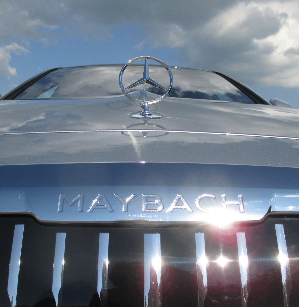 Chromstäbe zieren die Maybach-Kühlergrill mit Schriftzug und Mercedes-Stern darüber.