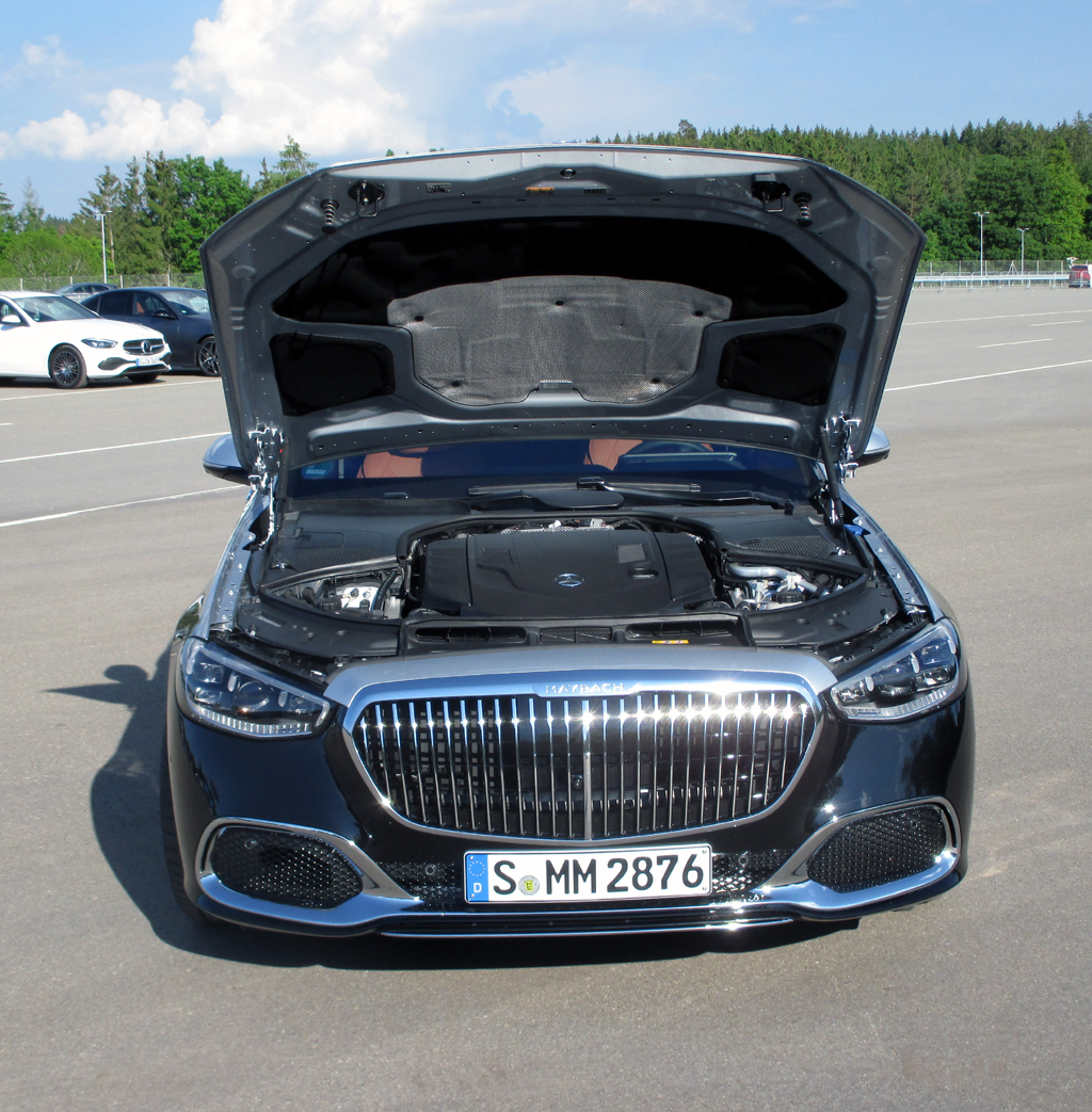 Das Fahren: Das Fahrwerk, serienmäßig schon mit Luftfederung und kontinuierlicher Dämpferverstellung versehen, lässt den Maybach überaus souverän über die Straße gleiten. Der Abrollkomfort selbst auf uneben-welligerem Untergrund ist hoch. Beim Tritt aufs Gaspedal geht es deutlich sportlicher zu Sache. Praktisch ist die automatische Niveauregulierung je nach Beladung. Über die Fahrprogramme ist der Wagen mit speziellem Modus sogar noch stärker auf Komfort einstellbar. Die optionale Hinterachslenkung erhöht die Wendigkeit in der Stadt und die Agilität in Kurven. Handelt es sich bei dem Chassis um das vollaktive auf 48-Volt-Basis, scannt es die Fahrbahn ab, bügelt langwellige Hindernisse glatt, schützt zudem bei einem Seitencrash, indem der Wagen angehoben wird. Mittels gegenphasiger Schallwellen gleicht eine aktive Fahrgeräuschunterdrückung erstmals unerwünschte, tieffrequente Töne aus. Die Lenkung gibt ausreichend direkte Rückmeldung. Die Scheibenbremsen verzögern wohldosiert und standfest. Mit dem Fahrpilot geht das hochautomatisierte Fahren bei Mercedes wohl noch im zweiten Halbjahr 2021 in Serie. Auf geeigneten Autobahnabschnitten und bei hohem Verkehrsaufkommen könnte die Elektronik dann das Fahren vorerst bis zum gesetzlich erlaubten Tempo 60 übernehmen.