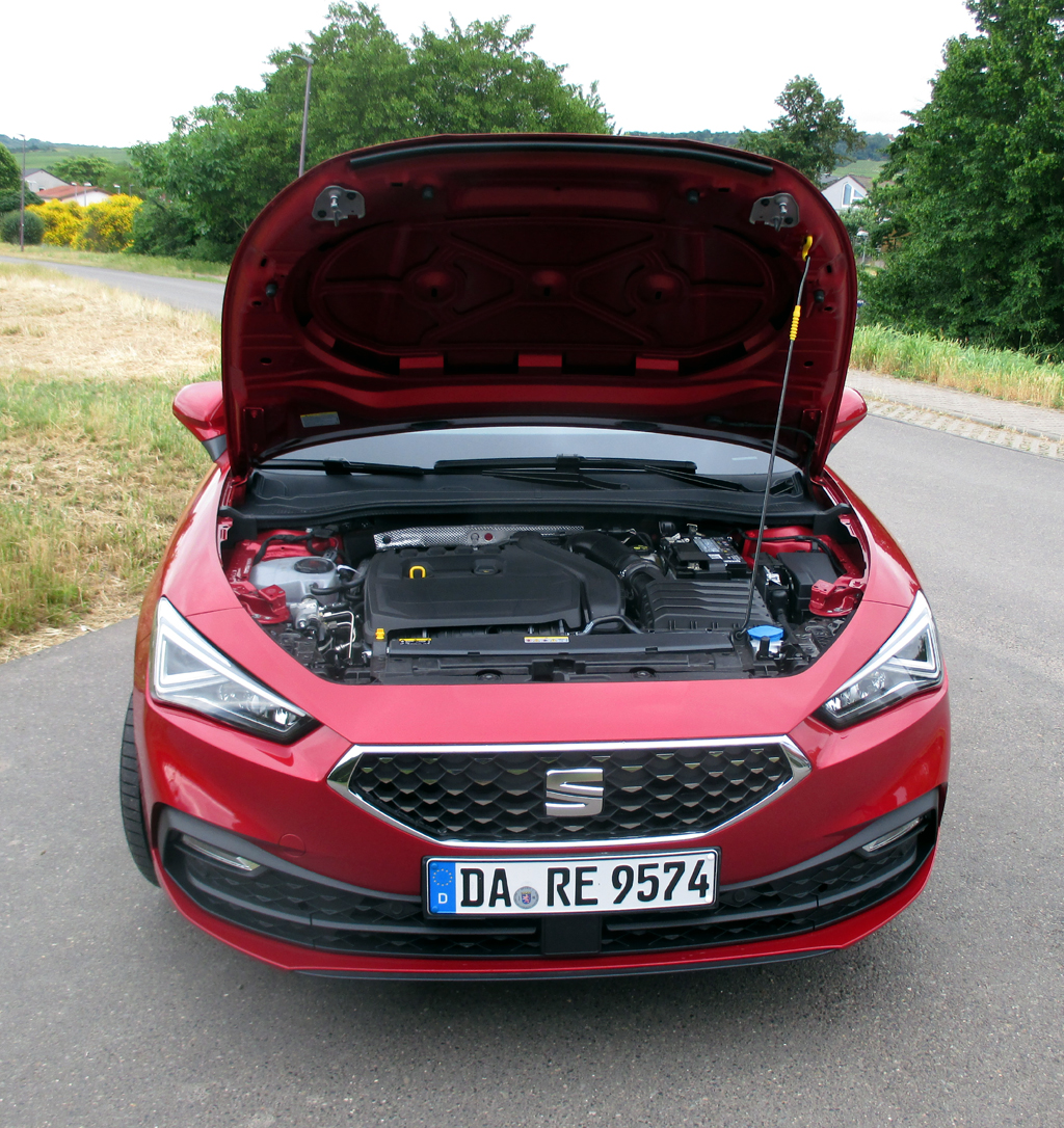 Der Antrieb: (Seat Leon/Leon Sportstourer) Fünf Turbobenziner mit 90, 110, 130, 150 und 190, zwei Turbodiesel mit 115 und 150, die Erdgasversion mit 130, zwei Mildhybrid mit 110 und 150, der Plug-in-Hybrid mit 204 PS. Alles Drei-, Vierzylinder. 1,0, 1,4, 1,5, 2,0 Liter Hubraum. Abgasnorm Euro-6. Drehmoment 175 bis 360 Newtonmeter. Beschleunigung 7,4 bis 13,2 Sekunden auf Tempo 100. Höchstgeschwindigkeit 183 bis 231 Stundenkilometer. Fünf-, Sechsgang-Schaltgetriebe, Sechs-, Siebengang-Automaten mit Doppelkupplung. Mixverbrauch nach WLTP zumindest laut Datenblatt 1,1 über 4,3 bis 6,9 Liter. Leergewicht 1275 bis 1658 Liter. (Cupra Leon/Leon Sportstourer) Drei Turbobenziner mit 245, 300 und 310 PS, zwei Plug-in-Hybrid mit 204 und 245 PS. Nur Vierzylinder. 2,0 und 1,4 Liter Hubraum. Abgasnorm Euro-6. Drehmoment 250 bis 400 Newtonmeter. Beschleunigung 4,9 bis 7,7 Sekunden auf Tempo 100. Höchstgeschwindigkeit 220 bis 250 Stundenkilometer. Sieben-, Sechsgang-Doppelkupplungsgetriebe. Mixverbrauch nach WLTP zumindest laut Datenblatt 1,2 über 7,1 bis 8,4 Liter. Leergewicht 1485 bis 1717 Kilo.