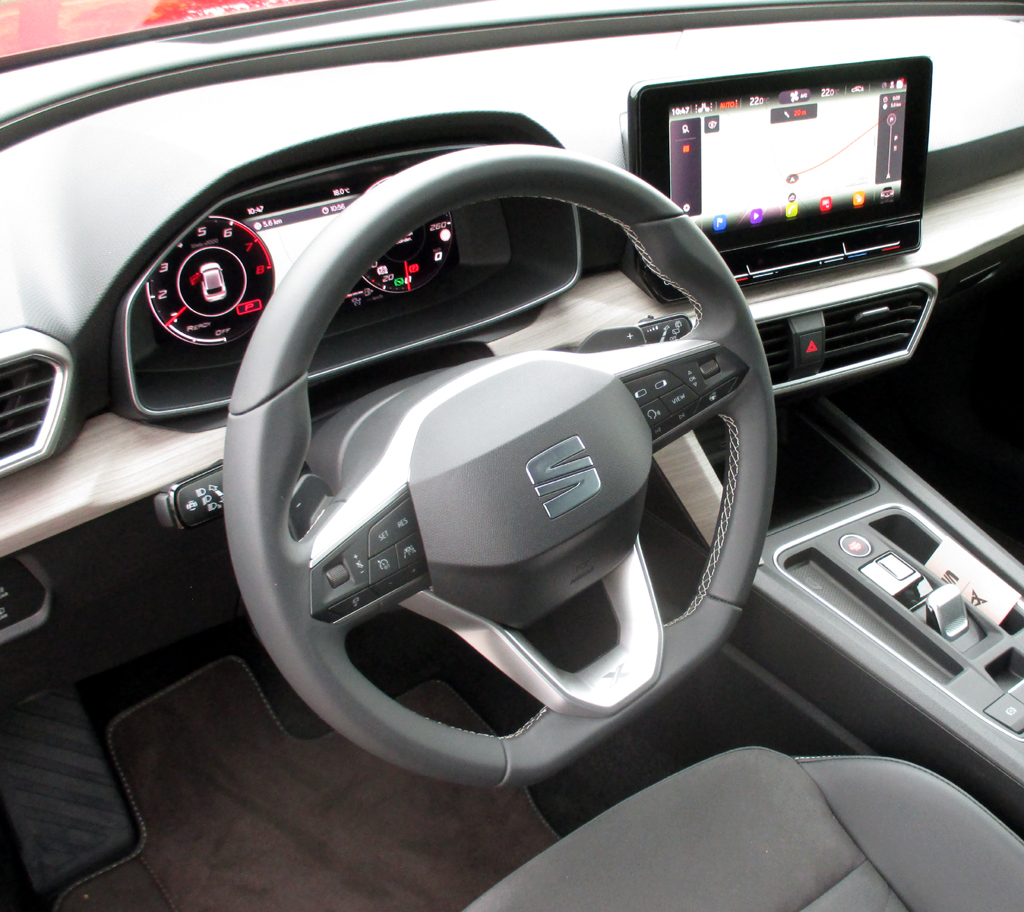 Die Ausstattung: Für den Seat Leon/Leon Sportstourer stehen gleich sechs Ausstattungslinien zur Wahl. Es sind dies Reference, Style, Xcellence, Xcellence Plus, FR und FR Plus. Schon im Basismodell gehören etwa LED-Scheinwerfer, LED-Heckleuchten, Einzonen-Klimaautomatik, Multimedia, 8,25-Touchscreen, Digitalradio, Vernetzung, Tempomat, Müdigkeitserkennung, Notbrems-, Spurhalteassistenz, Umfeldbeobachtung und 15-Zoll-Stahlfelgen mit 195er-Reifen zum Grundumgang. Leichtmetallräder werden erst ab Stufe zwei serienmäßig aufgezogen; die 16/17/18-Zöller haben dann 205/225er-Räder. Die Möglichkeit, unterschiedliche Fahrprofile einzustellen, ist ab Werk leider erst in den beiden höchsten Ausstattungen an Bord. Die Einstiegsausführung der Cupra Leon/Leon Sportstourer reicht etwa vom Voll-LED-Paket über virtuelles Cockpit, volldigitales Kombiinstrument mit 10,25-Zoll-Display, Dreizonen-Klimaautomatik, Multimedia, Zehnzoll-Touchscreen, Navigation, Digitalradio, Vernetzung, Sport-Multifunktionslederlenkrad, Sport-Schalensitze, Adaptivfahrwerk, Fahrprofileinstellung sowie Licht- und Sicht-Paket bis hin zu 18-Zoll-Leichtmetallräder mit 225er-Reifen.