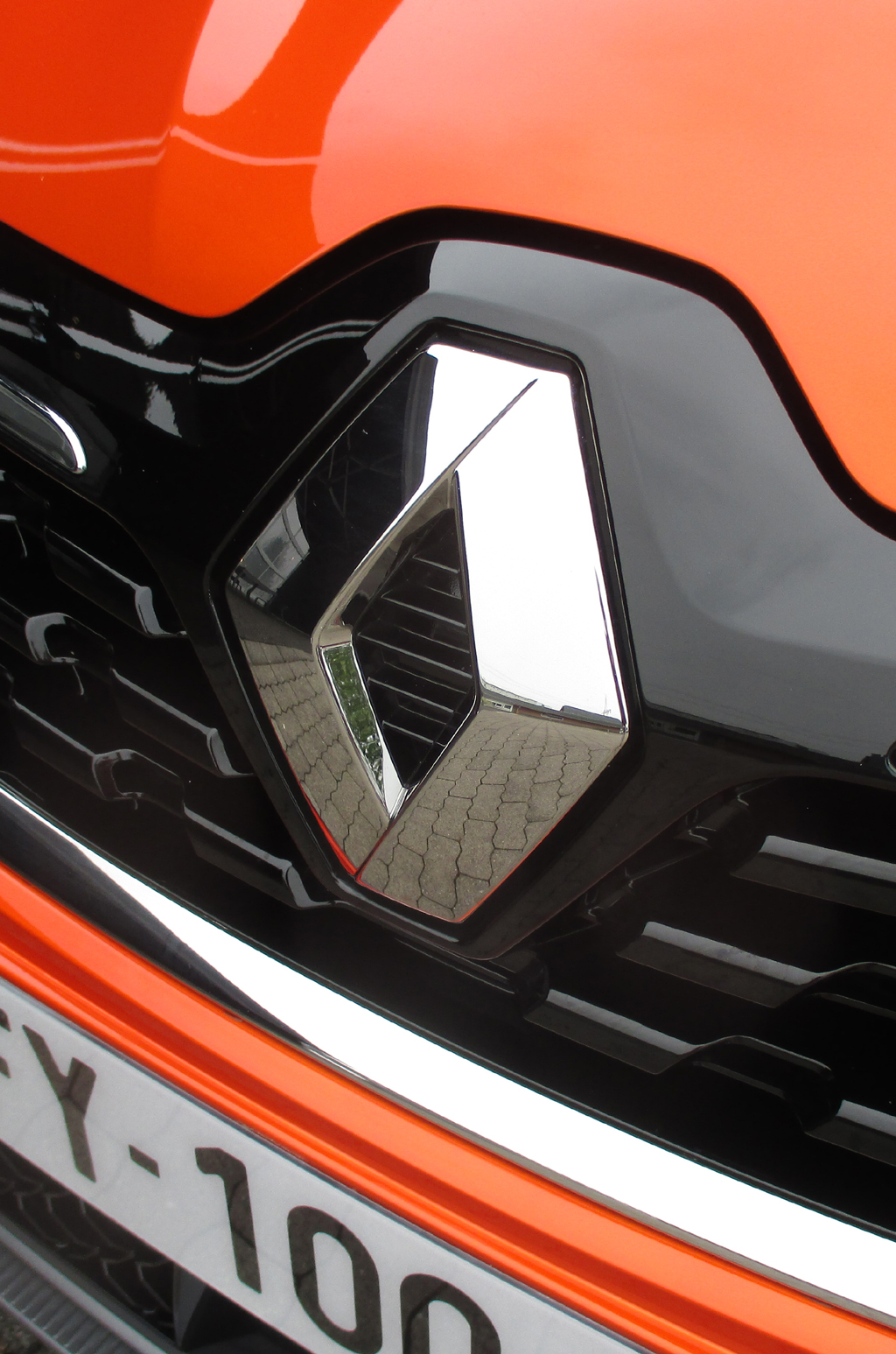Blick auf die markentypische Frontpartie mit dem Rhombus-Emblem vorn im Kühlergrill.