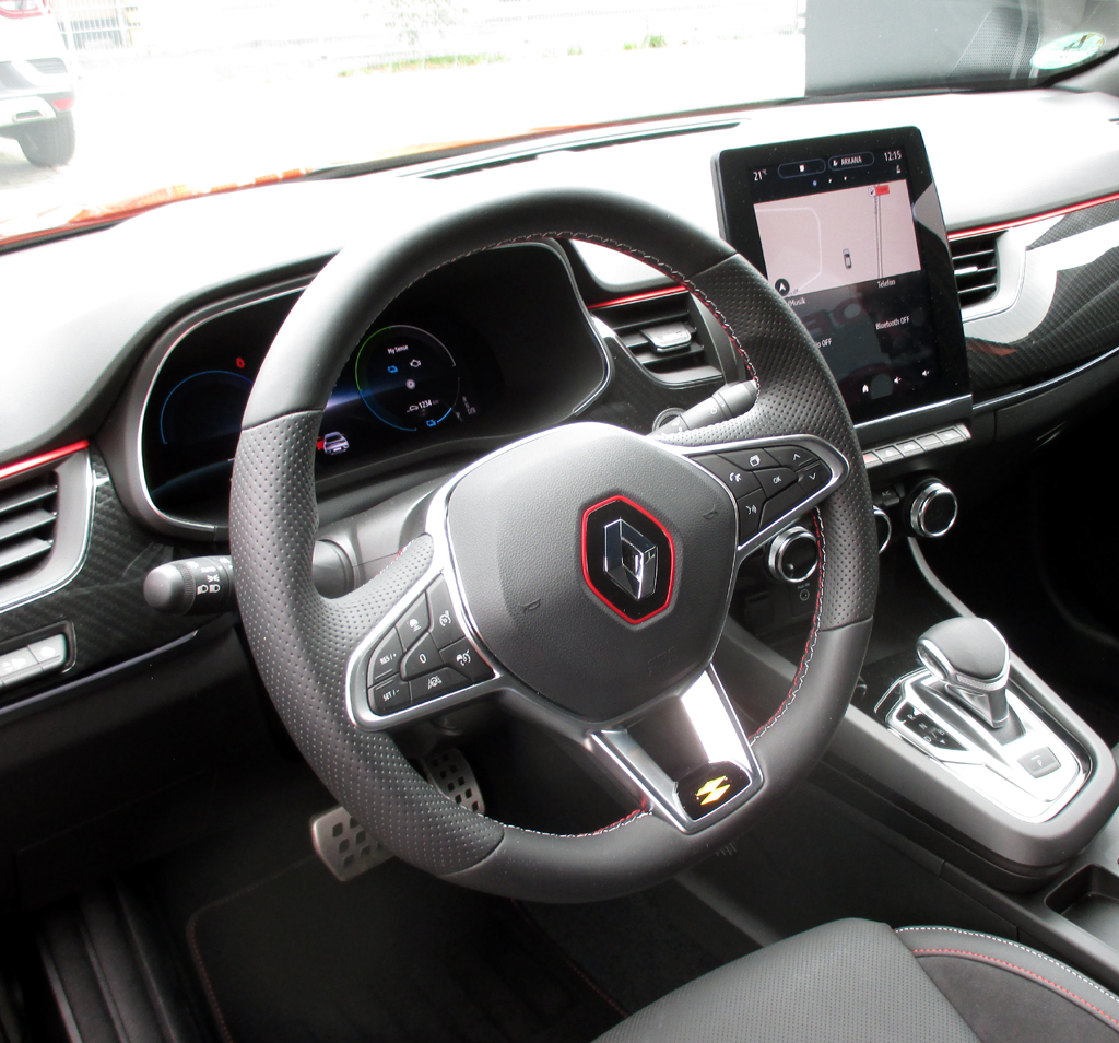Die Ausstattung: Zen, Intens und R.S.-Line heißen die drei Ausstattungslinien. In der Basisausführung sind etwa bereits Voll-LED-Scheinwerfer, Klimaautomatik, Multimedia, Siebenzoll-Touchscreen, Smartphone-Einbindung, Digitalradio, Licht-, Regensensor, Einparkhilfe, Rückfahrkamera, Tempomat samt Begrenzer, Notbrems-, Spurhalteassistenz, Fußgänger-, Verkehrszeichenerkennung und 17-Zoll-Leichtmetallräder mit 215er-Reifen enthalten. In der Stufe darüber sind Digitaltacho, 9,3-Zoll-Touchscreen, Navigation, Lederlenkrad, Adaptivtempomat, Querverkehrs-, Totwinkel-, Geschwindigkeitswarner und 18-Zöller Standard. Bei der höchsten Ausstattung gehören unter anderem spezifische Front-, Heckschürze, 360-Grad-Sensoren, Alcantara-Lederpolster und kabelloses Smartphone-Laden zum Grundumfang, für den nur als Intens oder R.S.-Line erhältlichen E-Tech-Hybrid 145 noch der E-Shifter genannte Getriebewählhebel.