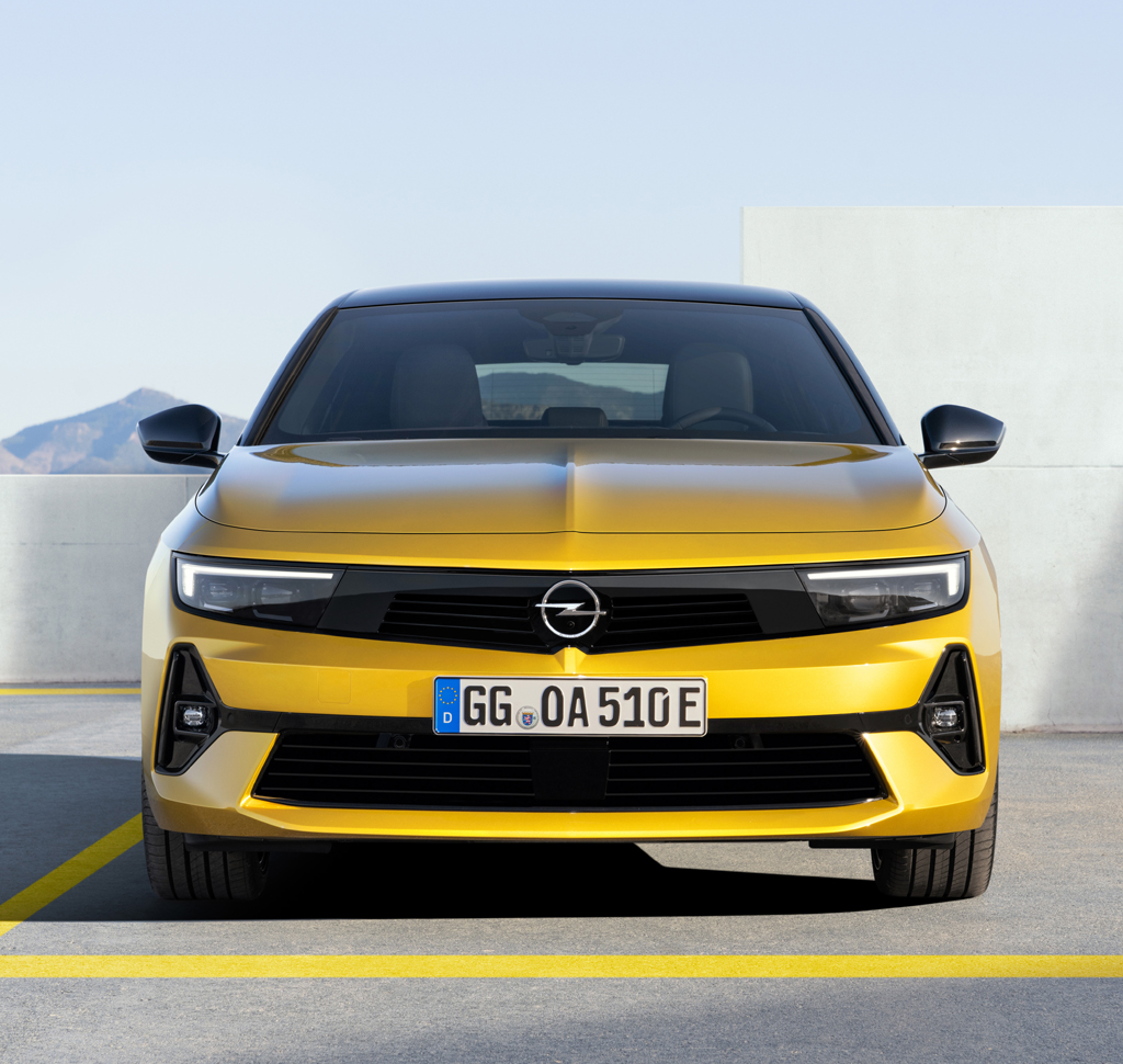 Auch das Opel-Kompaktmodell Astra fährt künftig im neuen Look vor. Fotos: Opel