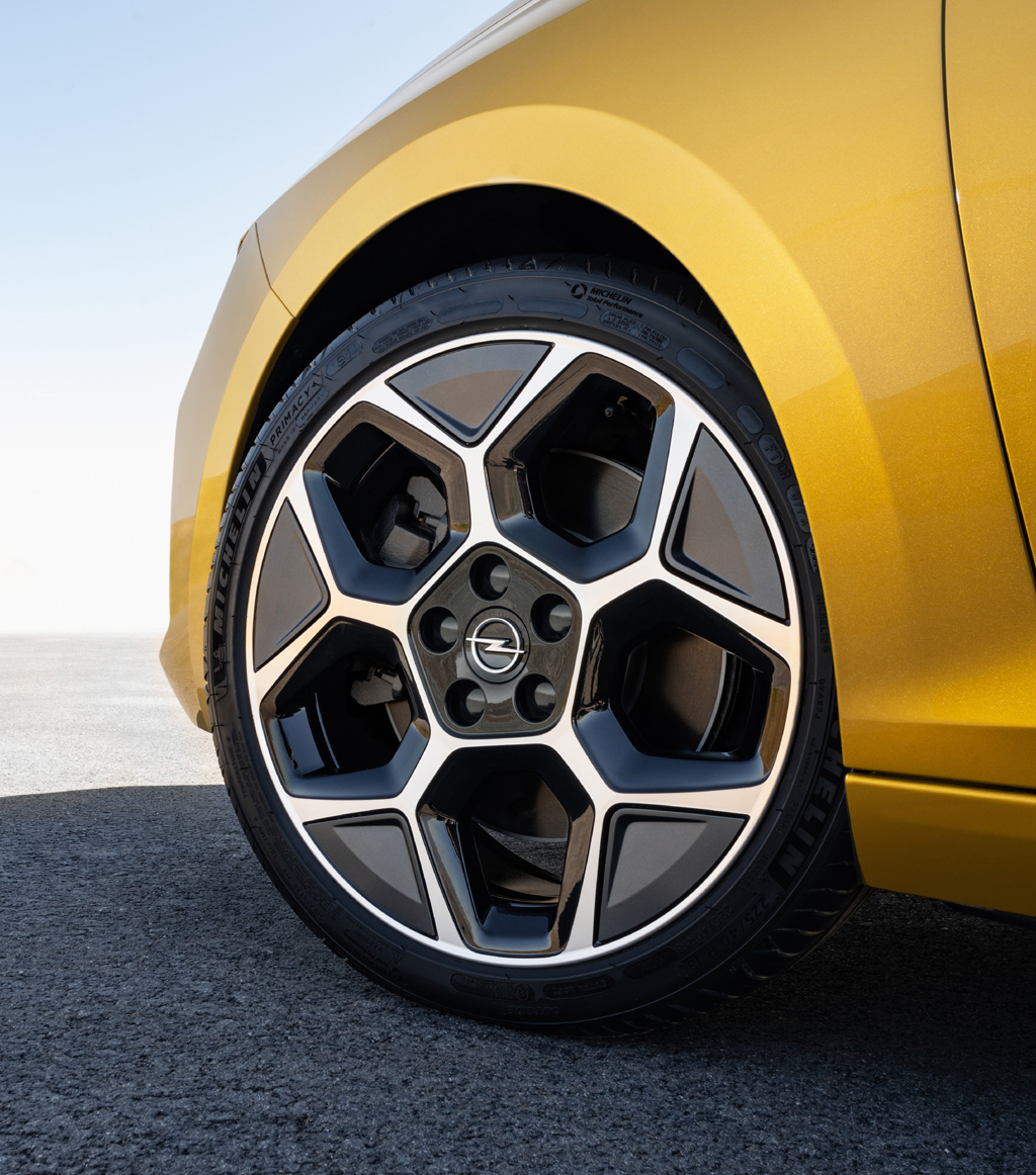 Wie schon Mokka, Crossland und Grandland fährt der Astra im neuen mutig-klareren, gleichzeitig sportlich-eleganteren Markenlook vor, den die Rüsselsheimer Vizor nennen. Er streckt sich mit 4,37 Metern gerade einmal vier Millimeter länger als der Vorgänger. Etwas mehr sind es dank des extrem kurzen Überhangs vorn beim Radstand, der künftig 2,67 Meter misst. Das mit verstellbarem Ladeboden versehene Gepäckabteil des Fünfsitzers fasst 422 Liter. Der neue Astra – Bügelfalte in der Motorhaube, coupéhaftere Linienführung und mehr Platz in der Kabine – wirkt ebenfalls am Heck insgesamt optisch breiter, integriert zugleich neue Technologien wie die besonders schlanken Intelli-Lux genannten LED-Adaptivscheinwerfer und die 360-Grad-Kamera in der Frontpartie.