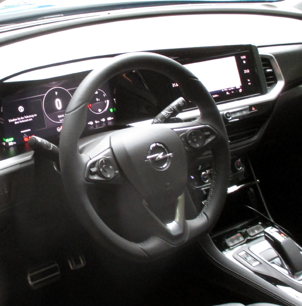 Das Auto: Der Grandland steht bei uns seit 2017 bei den Händlern. Er läuft inzwischen in Eisenbach vom Band, baut – 4,47 Meter lang, 1,90/2,09 Meter breit, 1,60 Meter hoch, Radstand 2,67 Meter, Kofferraum 514 bis 1652 Liter – auf Ebene des Stellantis-Konzerns, zu dem auch Opel gehört, auf einer Multi-Energie-Plattform für Verbrenner und Plug-in-Hybrid auf, auf der auch die Schwestermodelle Citroën C5 Aircross, DS7 Crossback und Peugeot 3008 entstehen. In überarbeiteter Version kommt nun ebenfalls der Grandland mit neuem Markengesicht daher, das die Rüsselsheimer Vizor nennen, wirkt formschöner und kraftvoller. Innen geht es selbst im Fond noch recht geräumig zu. Man sitzt höher, genießt ordentliche Rundumsicht. Breite Displays zeichnen das Digitalcockpit aus. „Neben dem Insignia“, sagt Programmdirektor Thomas Overhaus, „haben wir damit jetzt ein zweites Flaggschiff.“