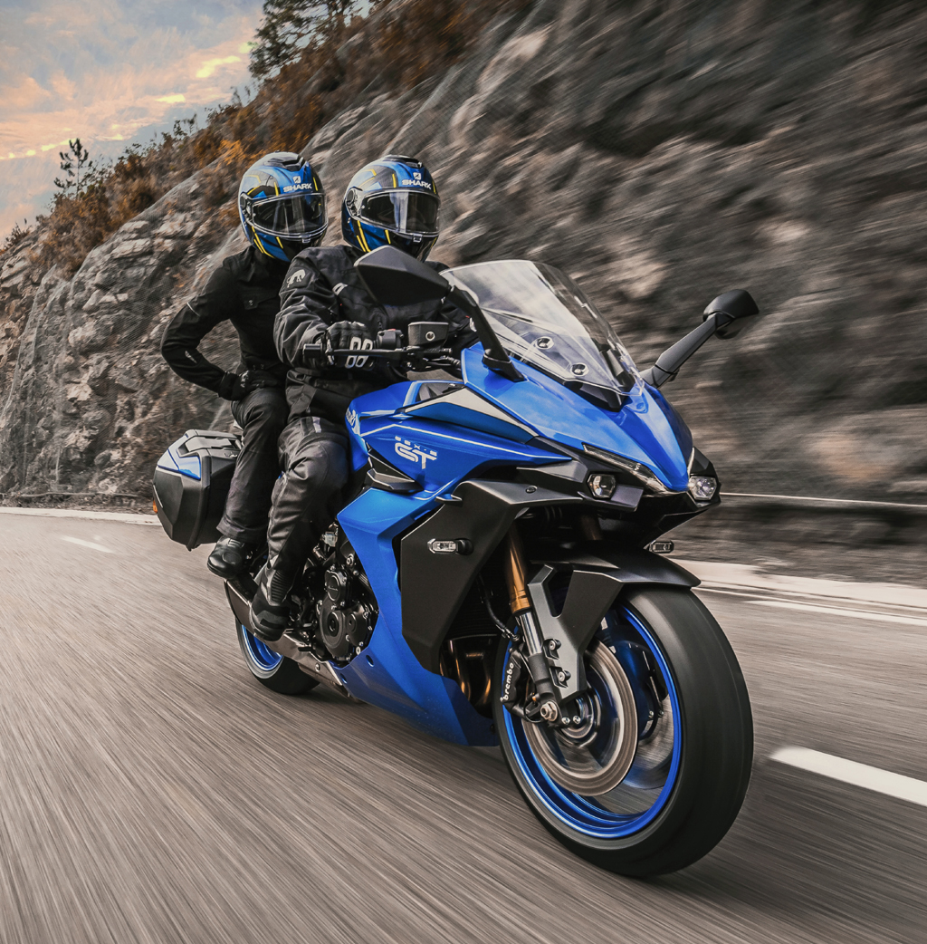 Die aerodynamisch optimierte Verkleidung mit neu designter Scheibe und seitlichen Winglets vermittelt ein sportliches Erscheinungsbild, bietet dazu noch bestmöglichen Wind- und Witterungsschutz. Ausgewogene Geometrie und wertiger gepolsterte Sitze inklusive ergonomisch geformter Haltegriffe sollen den Komfort selbst auf ausgedehnteren Autobahnetappen erhöhen. Die Griffe des verlängerten, konisch zulaufenden neuen Lenkers mit breiterer Griffposition sind näher an den Fahrer gerückt als bei der GSX-S1000F. Das Volumen der ins Heck des Bikes integrierten Seitenkoffer eignet sich für längere Urlaubsreisen zu zweit. Zudem soll die Reichweite, die sich aus 19 Litern Tankinhalt mit entsprechender Spriteffizienz ergibt, den Langstreckenanspruch unterstreichen.