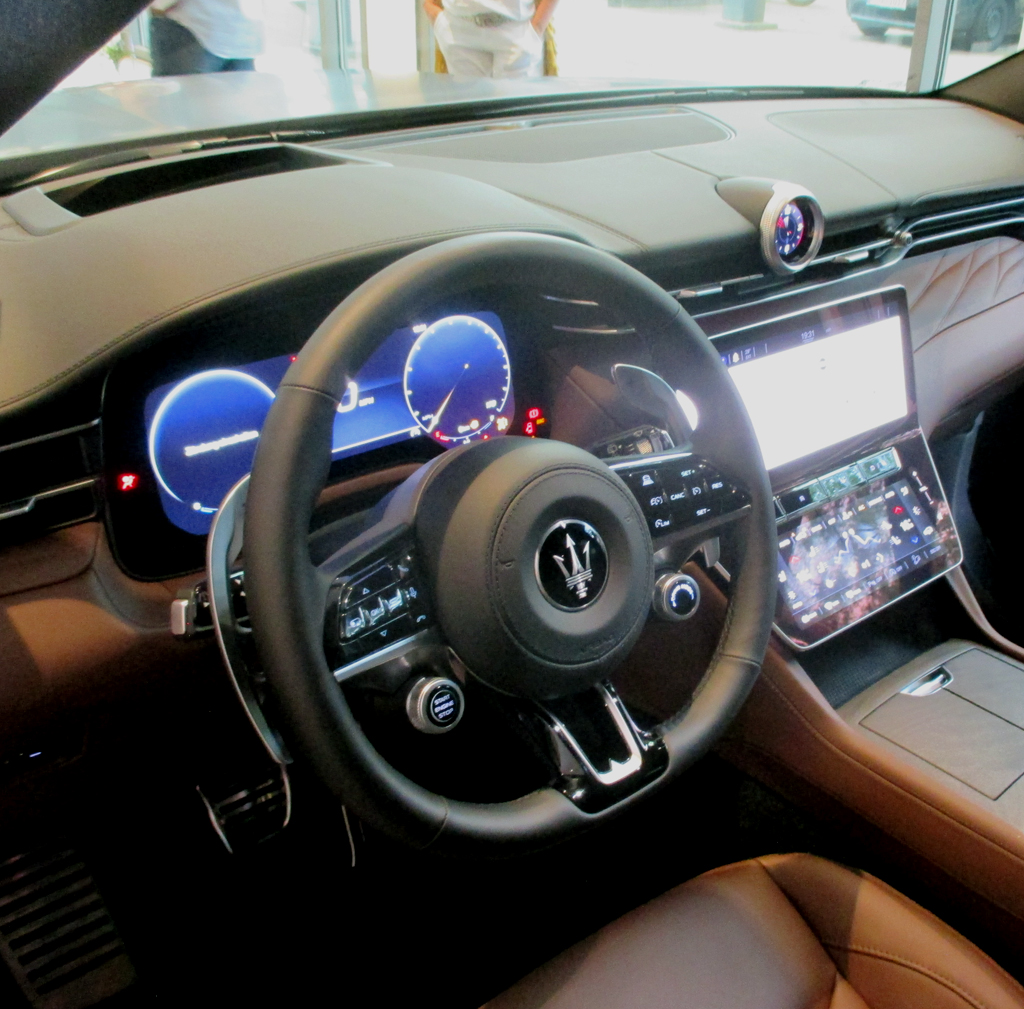 Die Ausstattung: Sie richtet sich nach den drei Motorisierungen GT, Modena, benannt nach dem Maserati-Hauptsitz in Italien, und Trofeo. Das Cockpit mit insgesamt vier Bildschirmen ist ein digitales. Verschiedenste Fahrerassistenzen sind schon ab Werk verbaut, andere wie das Headup-Display oder ganze Pakete mit elektronischen Hilfen kosten genauso extra wie die Soundanlage mit bis zu 21 Lautsprechern und 1285 Watt. Multimedia steht für Vernetzung. Die Online-Anbindung erlaubt etwa das Aufrufen von Verkehrsdaten in Echtzeit und die Möglichkeit, Amazons Sprachassistenz Alexa zu aktivieren. Smartphone-Integration ist möglich. Es gibt "Hey Maserati"-Sprachsteuerung. Spezielle Services und Funktionen sind nutzbar. Stilvolle Details reichen bis hin zur weichen Wohnzimmer-Effekt-Beleuchtung hinter dem Zentraldisplay.