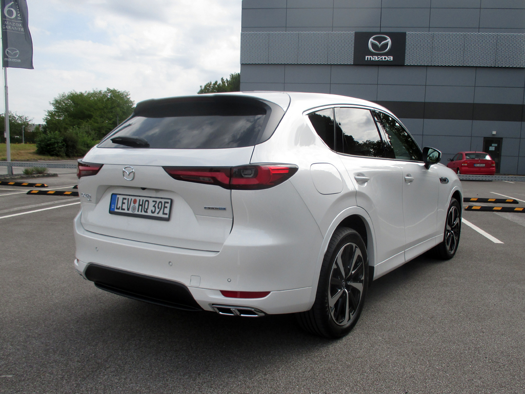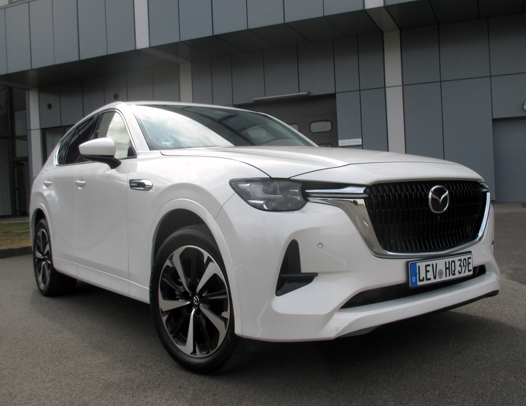 (CX-60 Plug-in-Hybrid) Motor: Vierzylinder-Benziner plus Elektromotor. Hubraum: 2,5 Liter. Leistung: 147/192 kW/PS (Verbrenner), 129/175 kW/PS (Elektromotor). Drehmoment: 261/4000 Newtonmeter/Umdrehungen pro Minute (Verbrenner), 270/4000 Newtonmeter pro Minute (Elektromotor). Systemleistung: 241/327 kW/PS. Systemdrehmoment: 500/4000 Newtonmeter/Umdrehungen pro Minute. Beschleunigung: 5,8 Sekunden von 0 auf Tempo 100. Höchstgeschwindigkeit: 200/140 Stundenkilometer (Hybrid-/Elektromodus). Antrieb: Allrad. Getriebe: Acht-Stufen-Automatik. Elektrische Reichweite: 63 Kilometer. Verbrauch: Laut Mazda kombiniert nach WLTP pro 100 Kilometer 1,5 Liter Benzin und 23 Kilowattstunden Strom. Abgasnorm: Euro-6d. Grundpreis: 47 390 bis 56 250 Euro.