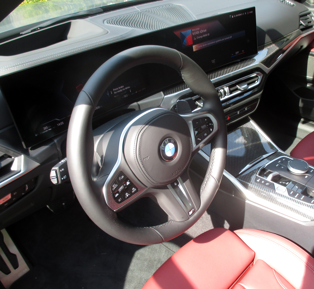 Das Fahren: Wir sind in der Benziner-Allradlimousine M340i xDrive unterwegs gewesen, deren Bordcomputer bei uns nach normalen Orts-, Landstraßen- und spritzigeren Autobahnfahrprofilen am Ende 9,8 (statt maximal 8,5 Liter) angezeigt hat. Es gibt die Fahrprogramme Komfort, Eco und Sport. Bei aller sportlich-strafferen Grundauslegung federt das Fahrwerk ausreichend komfortabel. An der Hinterachse ist erstmals ein elektronisches Sperrdifferenzial verbaut. Die Spur ist breiter. Der Schwerpunkt liegt tiefer. Die Dämpfung ist erhöht. Die ausgewogene hälftige Achslastverteilung und die direkter arbeitende variable Sportlenkung sorgen unterm Strich für besseres Handling und mehr Agilität. Die Scheibenbremsen packen standfest zu. Wer sich ambitionierter fortbewegen will, sollte an das M-Fahrwerk denken.