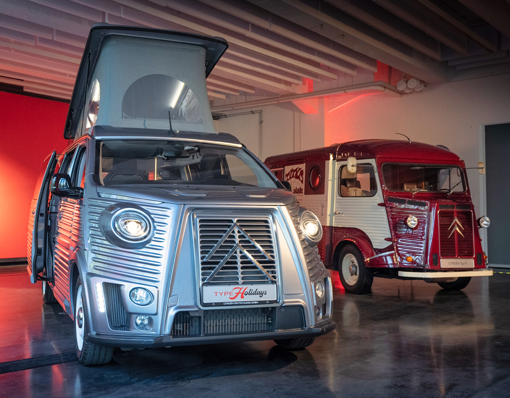 Beim Type Holidays, dem Urlaubstyp, handelt es sich um eine komfortabel ausgestattete Hommage an den legendären, von 1948 bis 1981 gebauten Typ-H-Kleintransporter der Franzosen, an den insbesondere das wellige Retro-Exterieur aus glasfaserverstärktem Kunststoff erinnert. Der Wagen baut sonst auf dem modernen Spacetourer der mittlerweile zum Stellantis-Konzern gehörenden Marke mit dem Doppelwinkel im Emblem auf.
