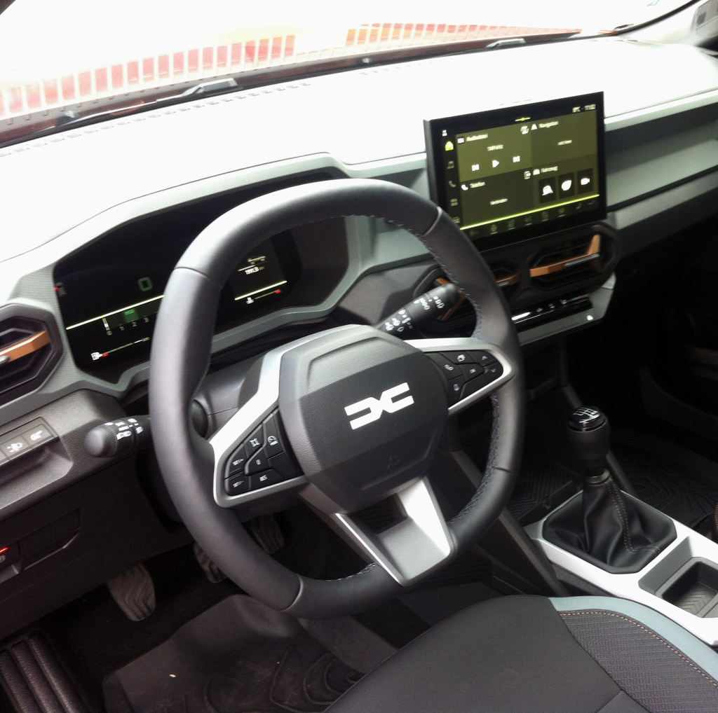 Das Fahren: Wir sind im 140-PS-Mildhybrid unterwegs gewesen. Bei uns hat der Bordcomputer in Sachen Verbrauch am Ende, eher moderat unterwegs, 6,8 Liter angezeigt. Der Dreizylinder läuft nach wie vor doch ziemlich rau. Dacia-Schlechtwege-Fahrwerke sind in der Vergangenheit eigentlich schon immer eher robust gewesen. Die Lenkung könnte direktere Rückmeldung geben. Die Bremsen verzögern standfest. Die Turboaufladung sorgt in Summe für etwas mehr Schwung. Nicht nur Böschungs- und Rampenwinkel, auch die mit bis zu 22 Zentimetern höhere Bodenfreiheit trägt ihren Teil zur Geländetauglichkeit bei. Lasten bis 1500/1000 Kilo können gezogen werden. Bei der Allrad-Version mit Allroad-Infosystem sind verschiedene Fahrmodi einstellbar, etwa für Schnee, Matsch, Sand oder für sonst schwieriges Gelände.