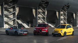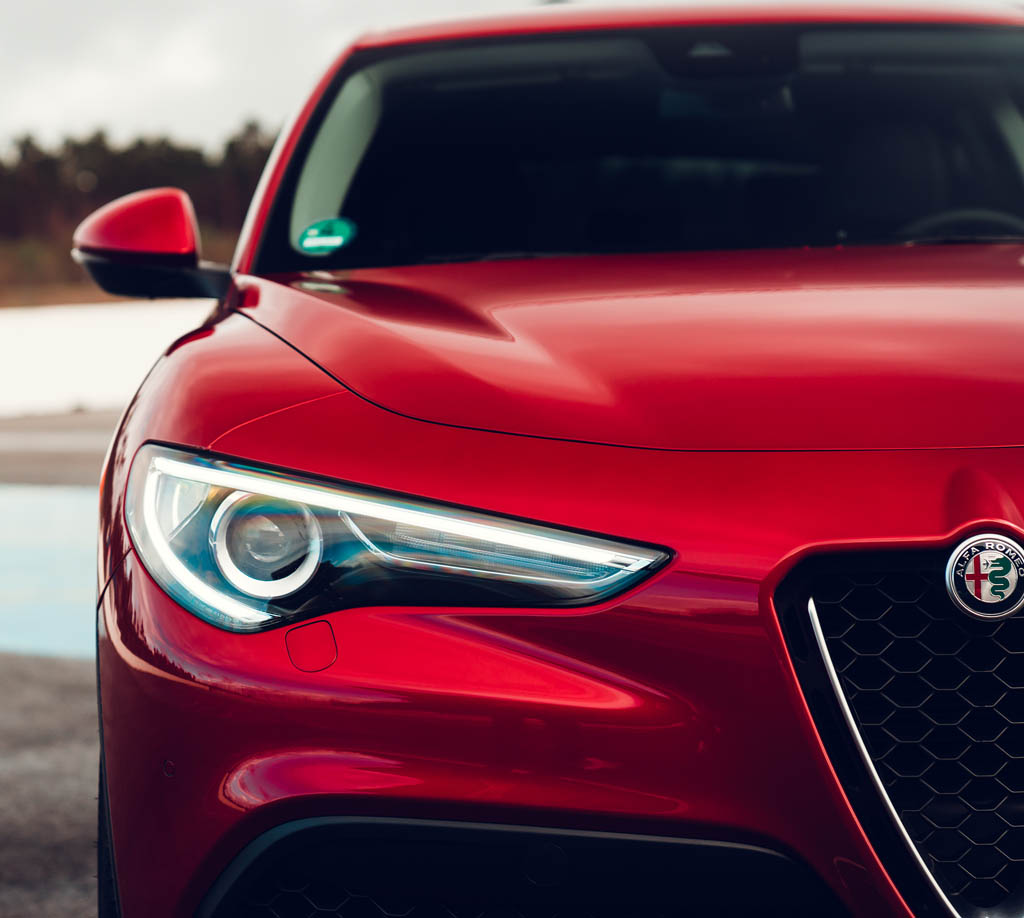 „Dann los“, sagt Frank Eickholt am Hockenheimring. Aber das ESP, den elektronischen Schleuderschutz, „lassen wir lieber an“, fügt der Instruktor hinzu. Im kleinen Kreis fädeln wir uns in dem hochgewachsenen Bruder der Sportlimousine Giulia auf den Rennparcours ein. Zum Glück hilft die Sonne etwas, die Strecke schneller abzutrocknen. Auch wenn sie überhaupt keine Vergleichsmodelle sind: In den kleinen Abarth 595 auf Fiat-500-Basis mit 180 PS und den offenen Abarth 124 Spider mit 170 PS steigen wir zwischendurch um, wenn wir noch einmal nachvollziehen wollen, wie diese beiden anderen Modelle des Fiat Chrysler Automobiles Konzerns, zu dem auch Alfa Romeo gehört, diese Strecke meistern.
