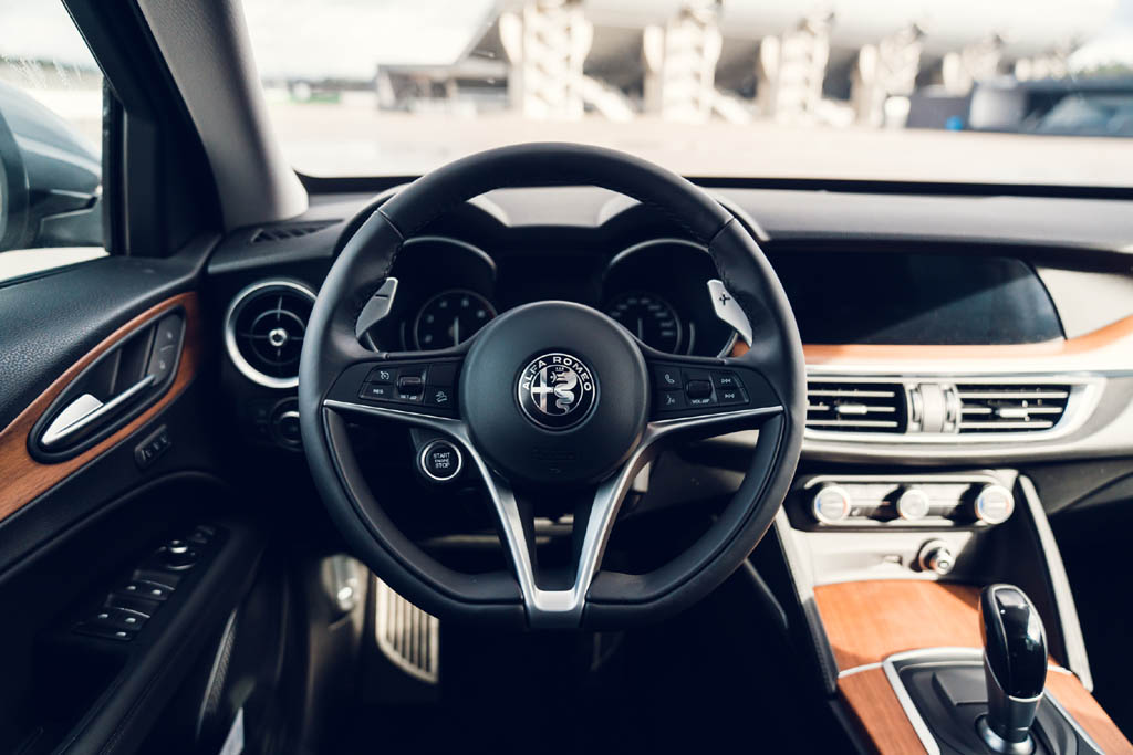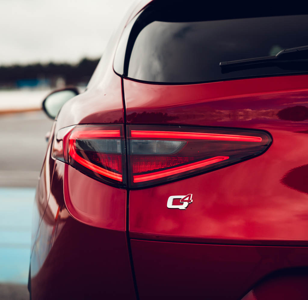 Die Ausrichtung ist klar: Sportlich soll sie sein. Das in der Premium-Mittelklasse im Umfeld etwa von Audi Q5, BMW X3, Jaguar F-Pace oder Mercedes GLC positionierte SUV – solide verarbeitet, durchaus wertig anmutend, 4,68 Meter lang, 2,81 Meter Radstand, mehr Bodenfreiheit, breitere Spuren, ordentlich Platz selbst im Fond, Kofferraum 525 Liter, insgesamt übersichtliches Cockpit, die Bedienung ist rasch im Griff – baut leicht. Teile der Karosserie und des Fahrwerks sind aus Aluminium, die Kardanwelle sogar aus Karbon. Das Gewicht ist bestmöglich jeweils hälftig zwischen beiden Achsen verteilt. Die Lenkung wirkt direkt übersetzt.