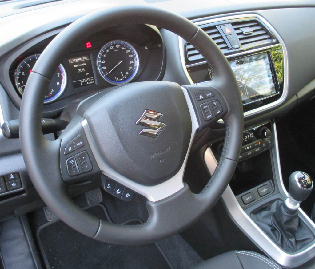 Die Front ist markanter gestaltet, soll laut Produktmarketing-Mann Markus Westermann die SUV-Eigenschaften stärker unterstreichen. Mit 4,30 Metern Länge bleibt der recht solide verarbeitete und in puncto Wertigkeit für sein Segment standesgemäß anmutende SX4 S-Cross kompakt und übersichtlich. 2,60 Meter Radstand sorgen für passable Geräumigkeit selbst hinten. Der Kofferraum fasst 430 bis 1269 Liter, sind die Rücksitze umgeklappt. Die 17-Zoll-Räder im neuen Felgendesign tragen ebenfalls zum äußerlich unterm Strich kraftvolleren Eindruck bei.