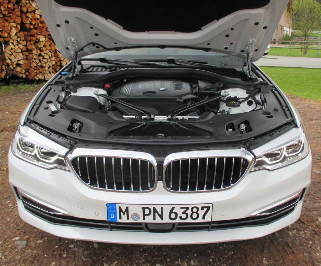 Das Fahren: Wir sind im Volumenmodell 520d unterwegs gewesen. Bei uns hat der Bordcomputer am Ende nach eher moderaten Landstraßen- und doch zügigeren Autobahnfahrprofilen immer noch akzeptable 6,2 Liter angezeigt. Wie die Limousine lässt sich auch der Kombi genauso sportlich wie komfortabel bewegen, wobei die serienmäßige Luftfederung mit Niveauregulierung an der Hinterachse spürbar den Komfort beim Fahren erhöht. Der xDrive-Permanentallrad, Standard beim großen Benziner, wahlweise beim großen Diesel, verteilt die Momente vollvariabel. Die elektromechanische Servolenkung gibt sehr gute direkte Rückmeldung. Die innenbelüfteten Scheibenbremsen packen standfest zu.