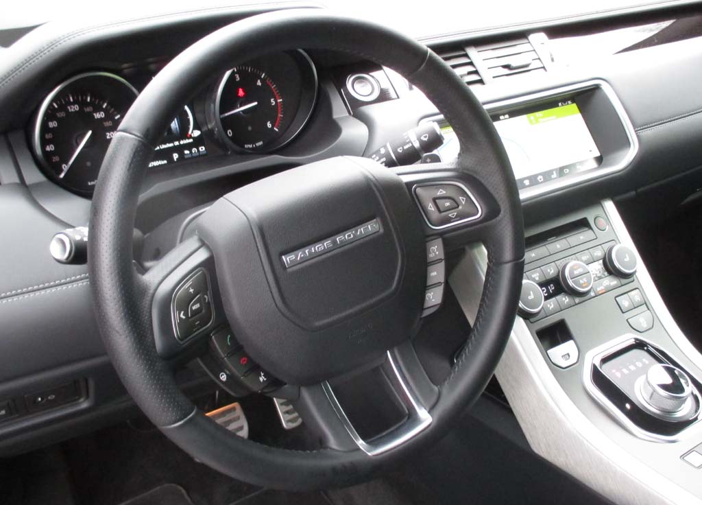 Leer bringt dieser Evoque mit bis zu 1967 rund 200 Kilo mehr auf die Waage, nach Angaben von Land Rovers Deutschland-Produktmarketing-Leiter Brian Fousse nicht zuletzt durch die bei Cabrios notwendigen Verstärkungen. Die Anhängelast beträgt 1500 Kilo. Den Mehrpreis beziffert Fousse auf rund 3000 Euro, „allerdings bei umfangreicherer Ausstattung“. Allrad ist grundsätzlich an Bord. Für den Benziner steht statt des elektronisch gesteuerten permanenten für 1000 Euro auch ein bedarfsgerecht zuschaltbarer zur Wahl. Serie wie die Elektronik, mit der die Möglichkeit besteht, den Wagen auf verschiedene Beschaffenheiten des Untergrunds einzustellen, ist die Wankneigungskontrolle, die hilft, Aufbaubewegungen der Karosserie des etwas höher liegenden Cabrios auszugleichen, zum Beispiel wenn man zügiger Kurven durcheilen will.