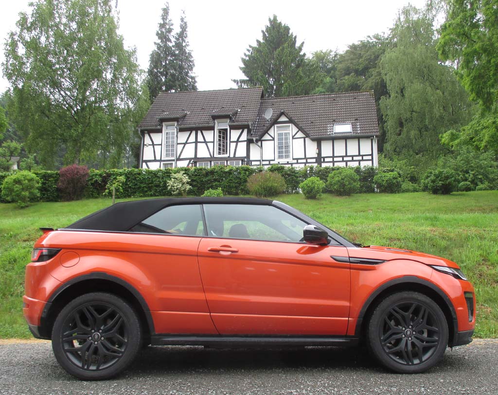 Die drei Motorisierungen, allesamt mit Neunstufen-Box kombinierte 2,0-Liter-Vierzylinder, sind bekannt. Dabei handelt es sich um einen kultivierten Benziner mit 240 PS ab 55 100 Euro sowie zwei im Durchzug stärkere und dennoch genügsamere Turbodiesel mit 150 und 180 PS. Sie machen das SUV-Cabrio in der Spitze 180 bis 209 Stundenkilometer schnell. Den Mixverbrauch geben die Briten zumindest im Datenblatt für ihr fünftes Mitglied der Range-Rover-Produktfamilie günstigstenfalls mit 5,7 und 8,6 Litern an. Bei uns hat der Bordcomputer des kräftigeren Selbstzünders nach Fahrprofilen meist auf Landstraßen und Autobahnen im Bergischen und im Sauerland am Ende 7,8 Liter angezeigt.