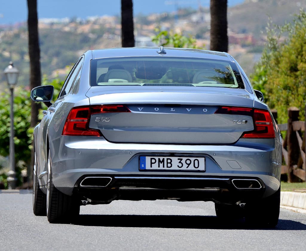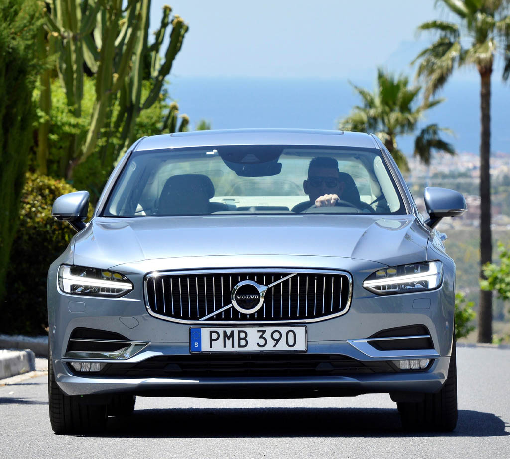 Der auf der XC90-Plattform aufbauende S90 fährt mit skandinavisch-eleganter Zurückhaltung, aufrechter Front, nach innen gewölbtem Kühlergrill und ungewöhnlich gestalteter Rückleuchtenarchitektur vor. Er kommt auf 4,96 Metern Länge sauber verarbeitet daher, mutet wertig an. Platz ist bei 2,94 Metern selbst im Fond noch ordentlich vorhanden. Das Gepäckabteil fasst 500 Liter. Klare Formen und edle Materialien zeichnen das Innere aus. Hebel, Schalter und Knöpfe sind reduziert. Das Cockpit ist übersichtlich gestaltet. Bloß die Bedienung der Zentraleinheit braucht etwas Eingewöhnungszeit.