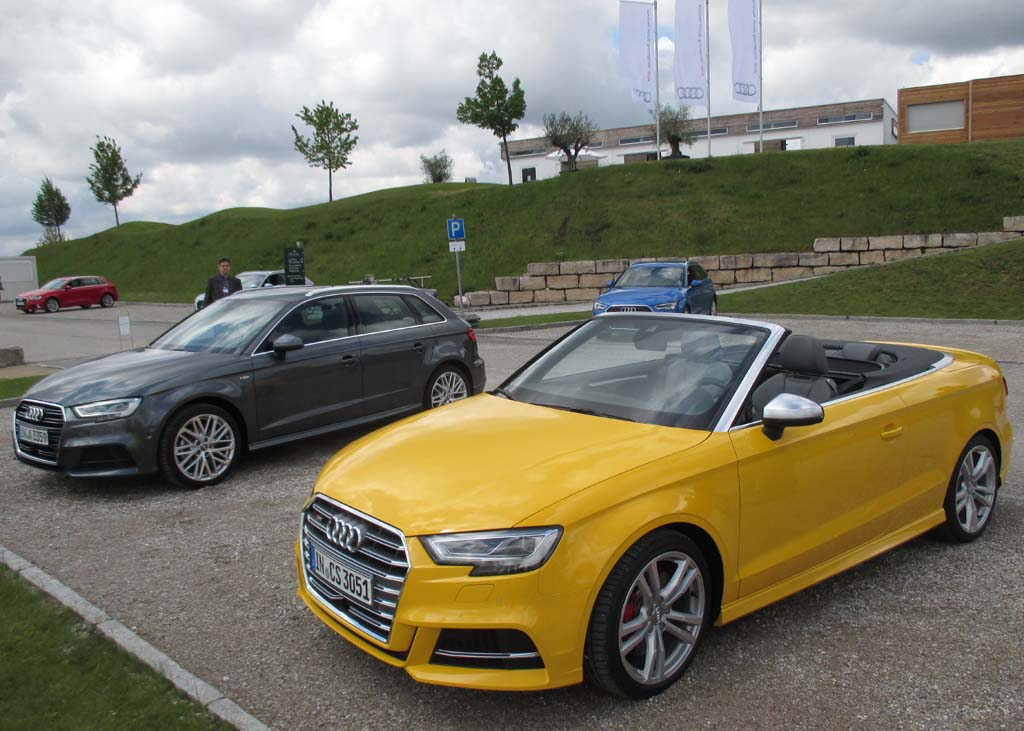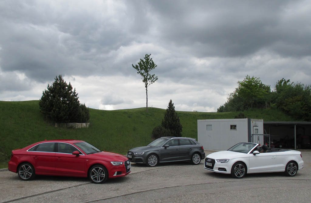 Audi A3, links die Limousine, in der Mitte der Sportback und rechts das Cabrio. Foto: Koch