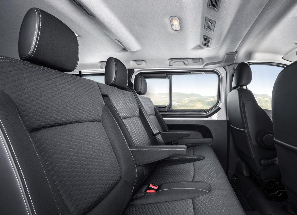 Egal ob Design oder Komfort: Auch bei eher funktionalen Nutzfahrzeugen versuchen Entwickler, sie immer mehr Richtung Pkw-Niveau zu heben. So verfügt der für längere Reisen geeignete Kombi etwa über einen sogar gleich sechsfach einstellbaren Fahrersitz mit Lendenwirbelstütze, dazu Doppelsitzbank für zwei Beifahrer, wahlweise auch Einzelsitz, sowie demontierbare Dreier-Sitzbänke in Reihe zwei und drei mit vergleichsweise viel Kniefreiheit auf allen Plätzen. Die Bank ganz hinten lässt sich ferner bei Bedarf umklappen. Und die Kopfstützen sind auf allen Plätzen höheneinstellbar. Aus dem geräumigen Kleinbus kann außerdem schnell ein Transporter mit fast sechs Kubikmetern Ladevolumen werden. In Sechser-Konfiguration ohne dritte Reihe passen je nach Fahrzeuglänge bis zu vier Kubikmeter in den Wagen.
