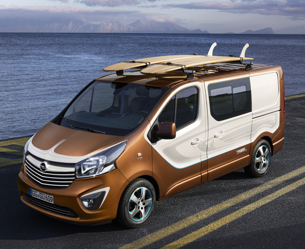 Den Vivaro gibt es als Kombi, Kastenwagen, Doppelkabiner und Plattform-Fahrgestell. Schwestermodelle sind der neue Fiat Talento, Nissan Primastar und Renault Trafic, auf dessen technischer Basis er entsteht. In der Variante als Großfamilien-Van bietet er Platz für bis zu neun Personen. Mit dem neuen IntelliLink-Infotainmentsystem kann er zudem zum mobilen Online-Büro umfunktioniert werden. Und wie sie sich den Vivaro als trendigen Lifestyler für Sport und Freizeit vorstellen, haben die Rüsselheimer mit dem dem Surf Concept auch schon gezeigt.