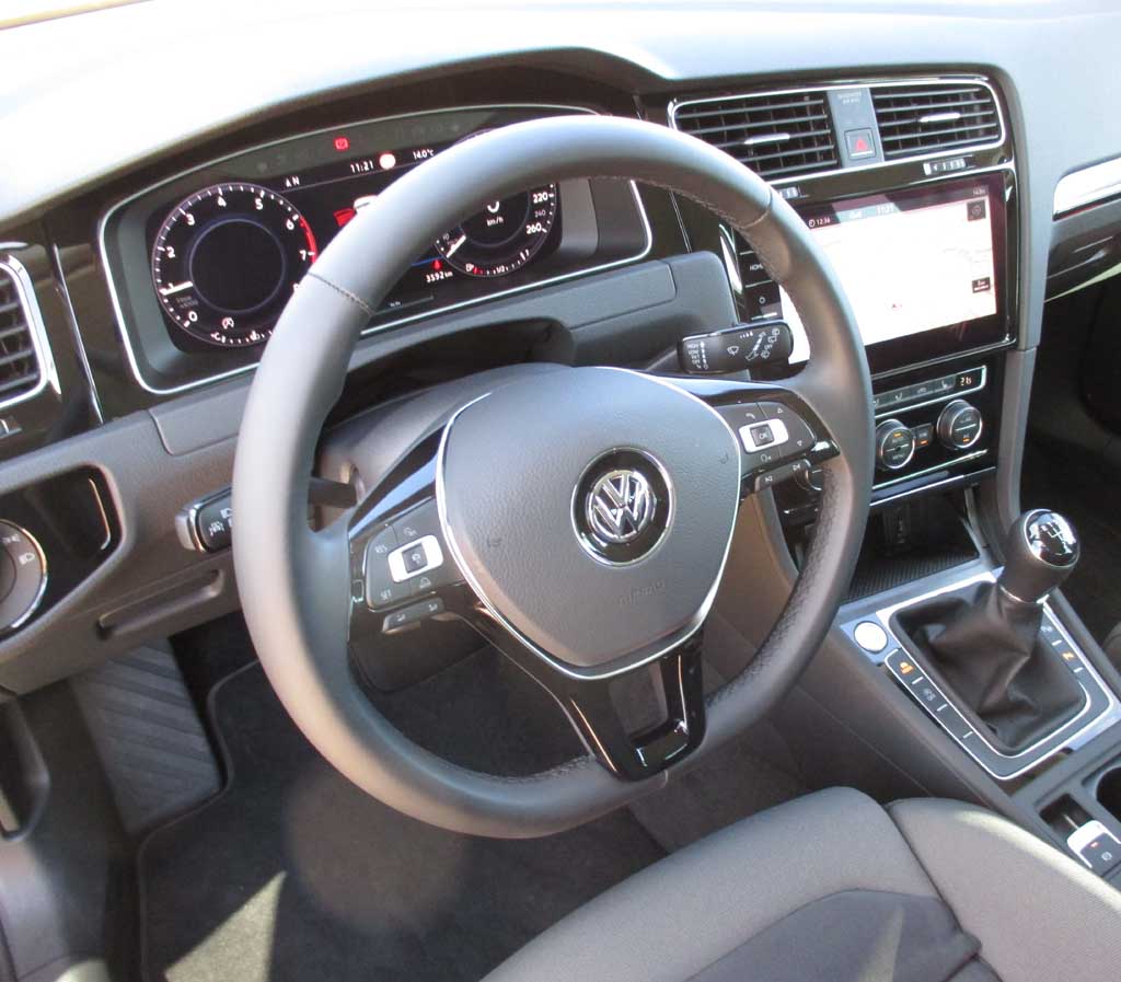 Das Fahren: Wir sind im ebenfalls neuen 1,5-Liter-Turbobenziner mit 150 PS und variabler Zylinderabschaltung unterwegs gewesen, der im Laufe des Jahres die hubraumkleineren 1,4-Liter ablösen soll. Geplant ist, dass später noch ein sparsameres 130-PS-Pendant folgt, kündigt Martina Biene an, die das Produktmarketing für den Golf leitet. Bei uns hat der Vierzylinder einen recht kultiviert-agilen Eindruck hinterlassen mit einem Verbrauch, den der Bordcomputer am Ende nach konstant moderater Überlandfahrt mit knapp über sechs Litern angezeigt hat. Beim Fahrverhalten ist die gelungene Mischung aus Sportlichkeit und Komfort typisch eigentlich für alle Golf. Die Lenkung gibt gute Rückmeldung von der Straße. Die Bremsen packen standfest zu.