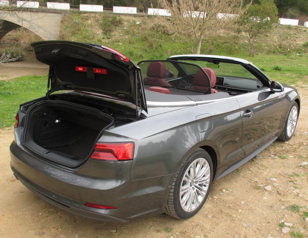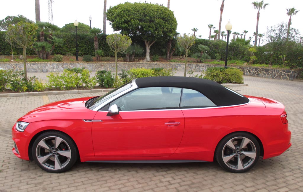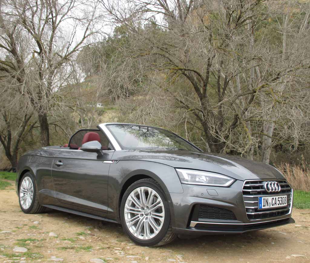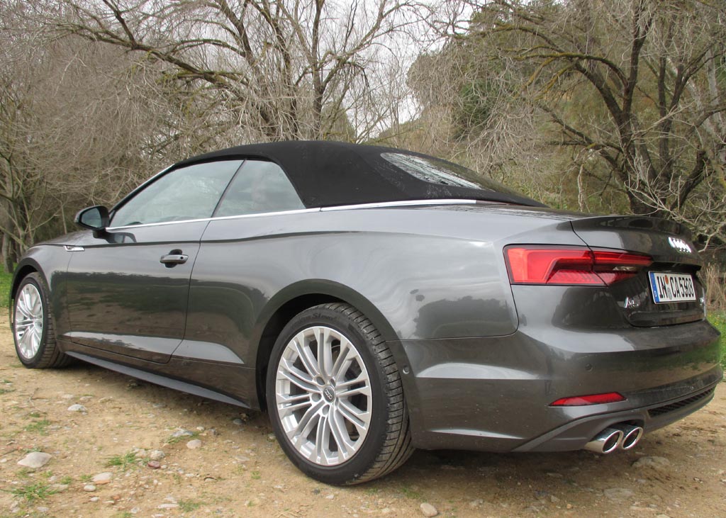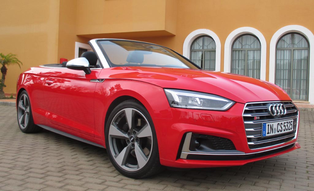 Das Fahren: Wir sind über Land eher moderat im 190-PS-Diesel unterwegs gewesen, dessen Borcomputer uns am Ende knapp unter sechs Liter Verbrauch angezeigt hat. Nach den zügigeren Autobahnfahrprofilen mit dem klangvolleren 354-PS-S5-Benziner standen zuletzt jedoch doch fast neun Liter zu Buche. Bei aller Sportlichkeit des Fahrwerks bleibt der Komfort auch dank des stärker gedämmten Serien-Akustikverdecks und, wenn das geöffnet ist, dank der relativ geringen Verwirbelungen selbst bei schnelleren Geschwindigkeiten hoch. Die verwindungssteifere Karosserie trägt ihren Teil zum agilen Handling bei. Über das Serien-Dynamiksystem lassen sich von effizient bis individuell verschiedene Fahrprogramme einstellen. Die neue elektromechanische Lenkung gibt direktere Rückmeldung von der Straße. Die Scheibenbremsen packen standfest zu.