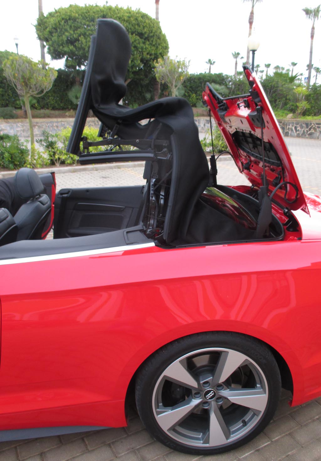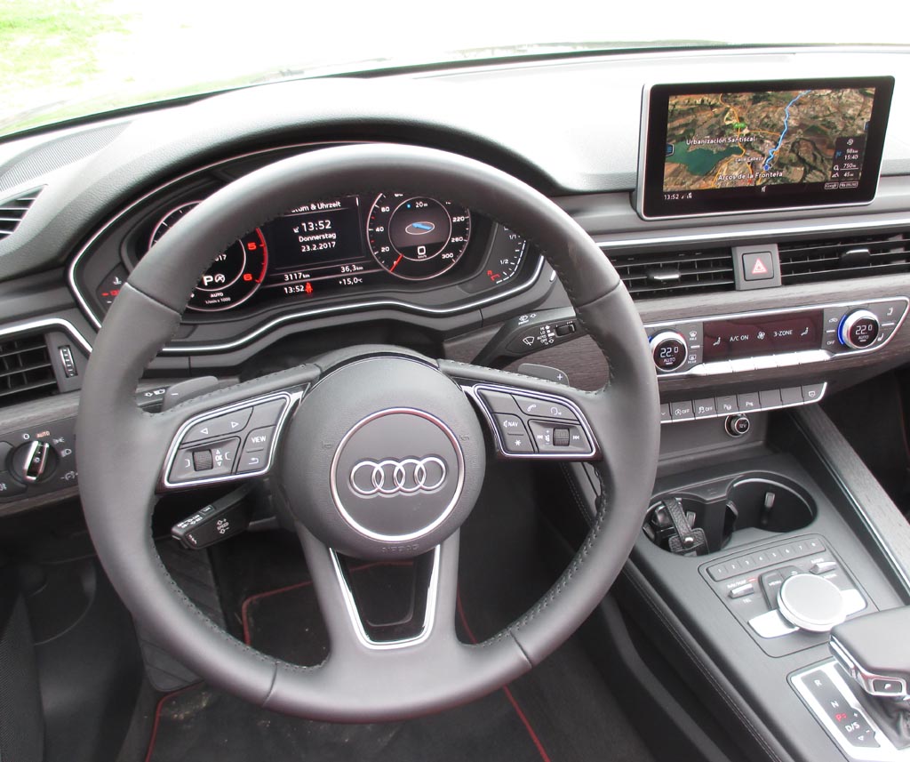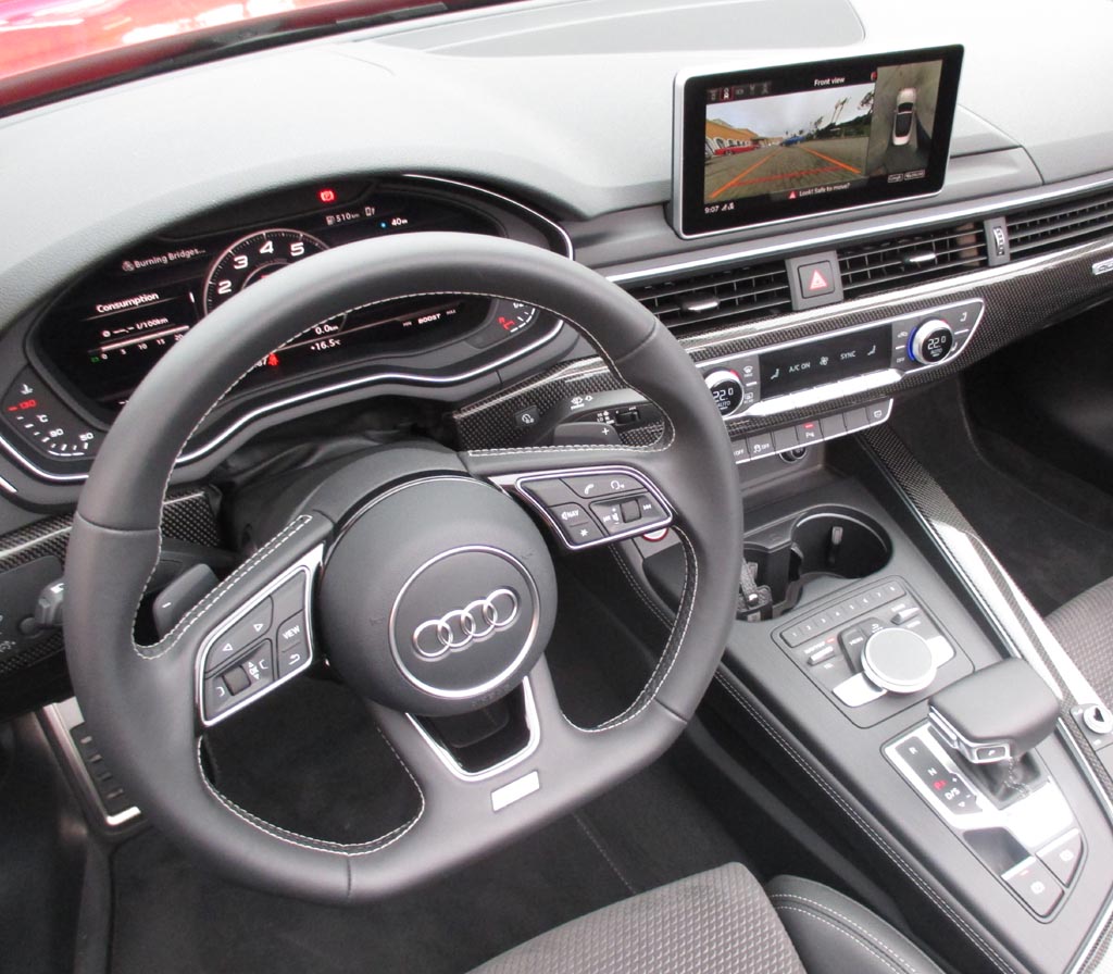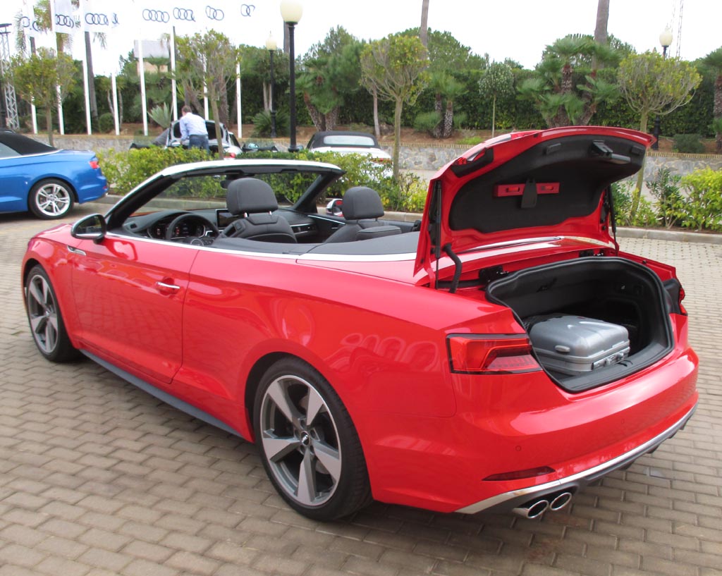 Das Fahren: Wir sind über Land eher moderat im 190-PS-Diesel unterwegs gewesen, dessen Borcomputer uns am Ende knapp unter sechs Liter Verbrauch angezeigt hat. Nach den zügigeren Autobahnfahrprofilen mit dem klangvolleren 354-PS-S5-Benziner standen zuletzt jedoch doch fast neun Liter zu Buche. Bei aller Sportlichkeit des Fahrwerks bleibt der Komfort auch dank des stärker gedämmten Serien-Akustikverdecks und, wenn das geöffnet ist, dank der relativ geringen Verwirbelungen selbst bei schnelleren Geschwindigkeiten hoch. Die verwindungssteifere Karosserie trägt ihren Teil zum agilen Handling bei. Über das Serien-Dynamiksystem lassen sich von effizient bis individuell verschiedene Fahrprogramme einstellen. Die neue elektromechanische Lenkung gibt direktere Rückmeldung von der Straße. Die Scheibenbremsen packen standfest zu.