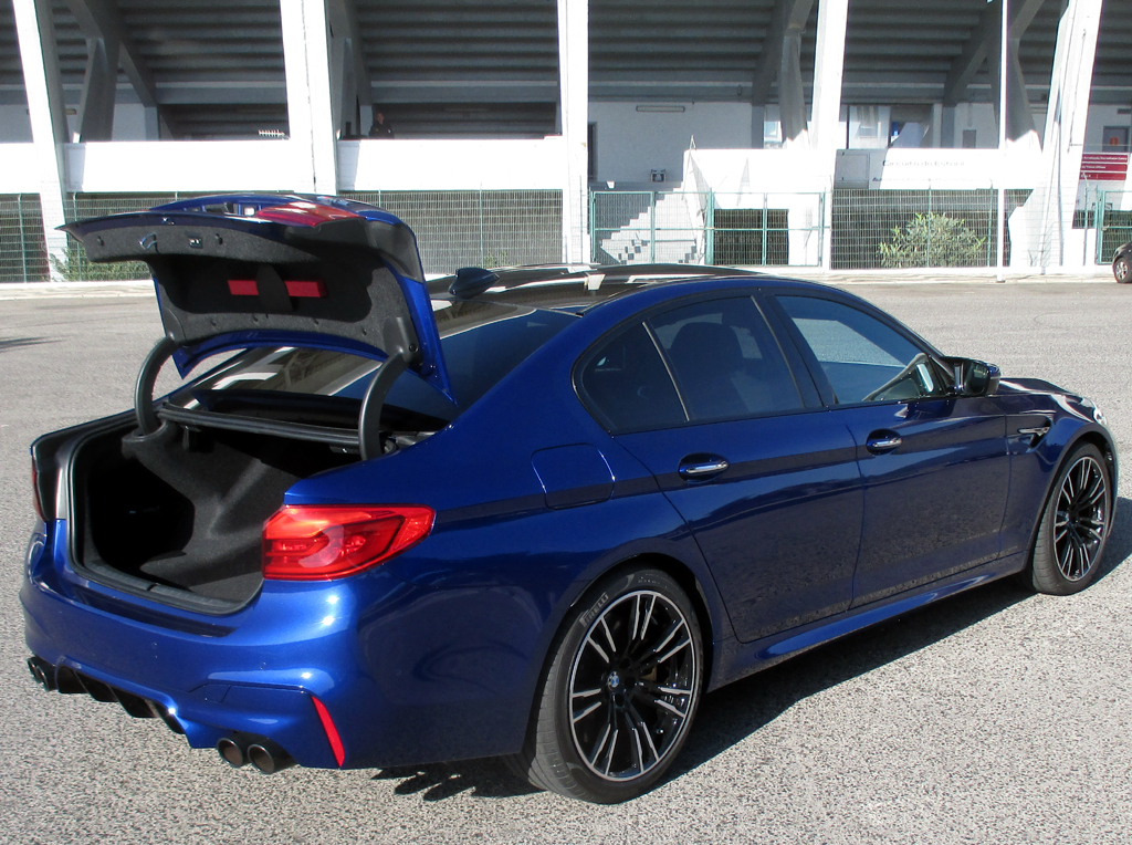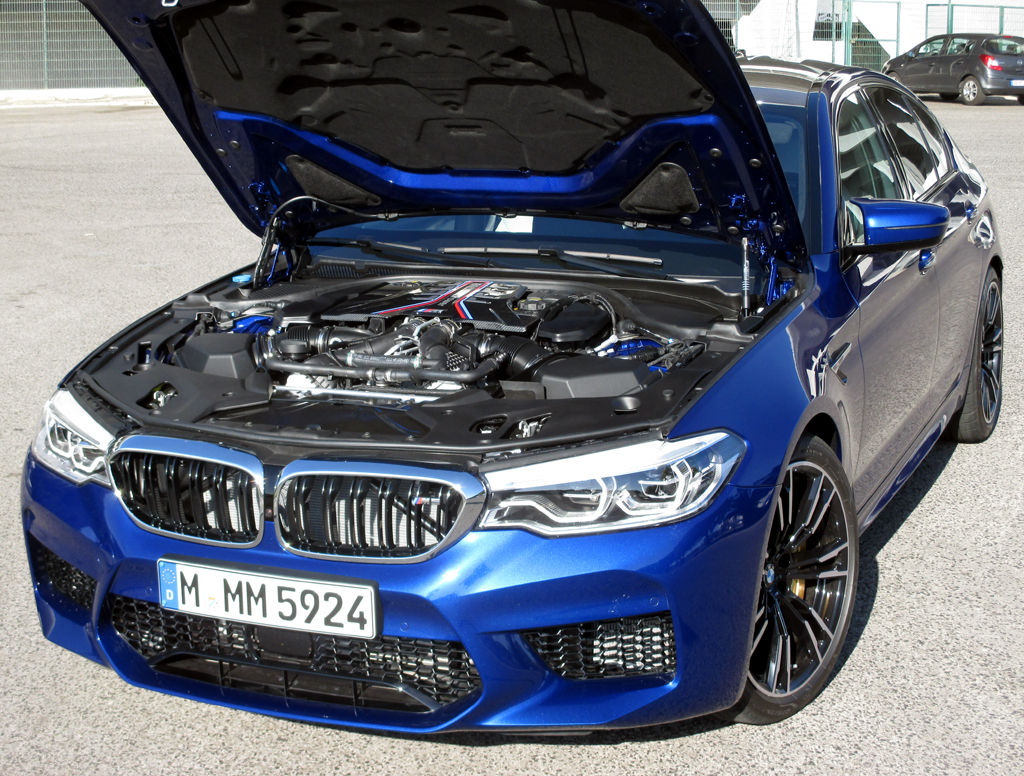Das Auto: Bei dem viertürigen Hochleistungs-Fünfsitzer im Premiumsegment der oberen Mittelklasse handelt es sich um die seit 1985 sechste Generation der Limousine. Auch sie deutet von der Verkleidung des Frontstoßfängers mit größeren Öffnungen für die Luftzufuhr über die Motorhaube mit den markanten Sicken und die breiteren Seitenwände bis hin zu den vier Endrohren der Abgasanlage und den Heckdiffusor schon außen an, was in ihr steckt. Der M5 fährt auf fast fünf Metern Länge sauber verarbeitet vor, mutet wertig an. Platz ist bei knapp drei Metern Radstand selbst im Fond noch genug vorhanden. Das Gepäckabteil fasst 530 Liter. Bei aller Technik ist die Bedienung im trotzdem insgesamt recht übersichtlichen, sportlich-funktionellen Cockpit rasch im Griff.