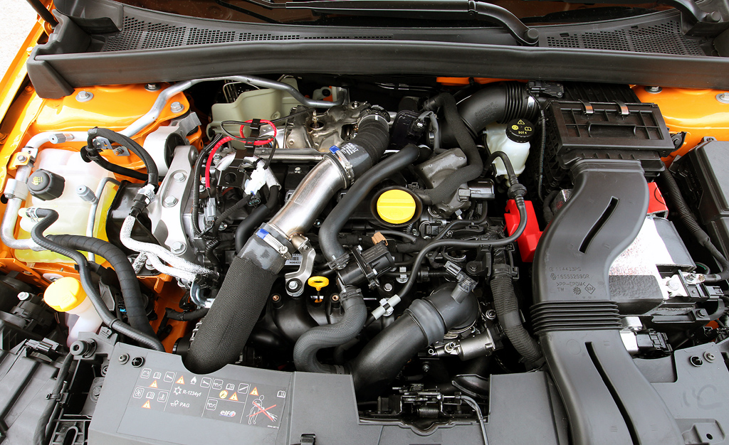 Der Antrieb: Um den kümmert sich nun ein neuer 1,8-Liter-Turbobenziner mit 280 PS und durchzugsstark-spritzigen 390 Newtonmetern. Der hoch bis 6000 Touren drehende Vierzylinder ermöglicht in diesem temperamentvollen Sport-Renault jetzt sogar bis zu 255 Stundenkilometer Spitze. Ein kernig-kurz übersetztes Sechsgang-Schaltgetriebe überträgt die Kraft auf die Vorderräder. Alternativ steht eine Doppelkupplungsbox mit ebenfalls sechs Gängen zur Wahl. Den Verbrauch geben die Franzosen im Mix zwar mit 7,2/6,9 Litern an, zumindest im Datenblatt, doch dürften die bei der steten Verlockung zum Tritt aufs Gaspedal in diesem Powerpaket eher selten zu erreichen sein.