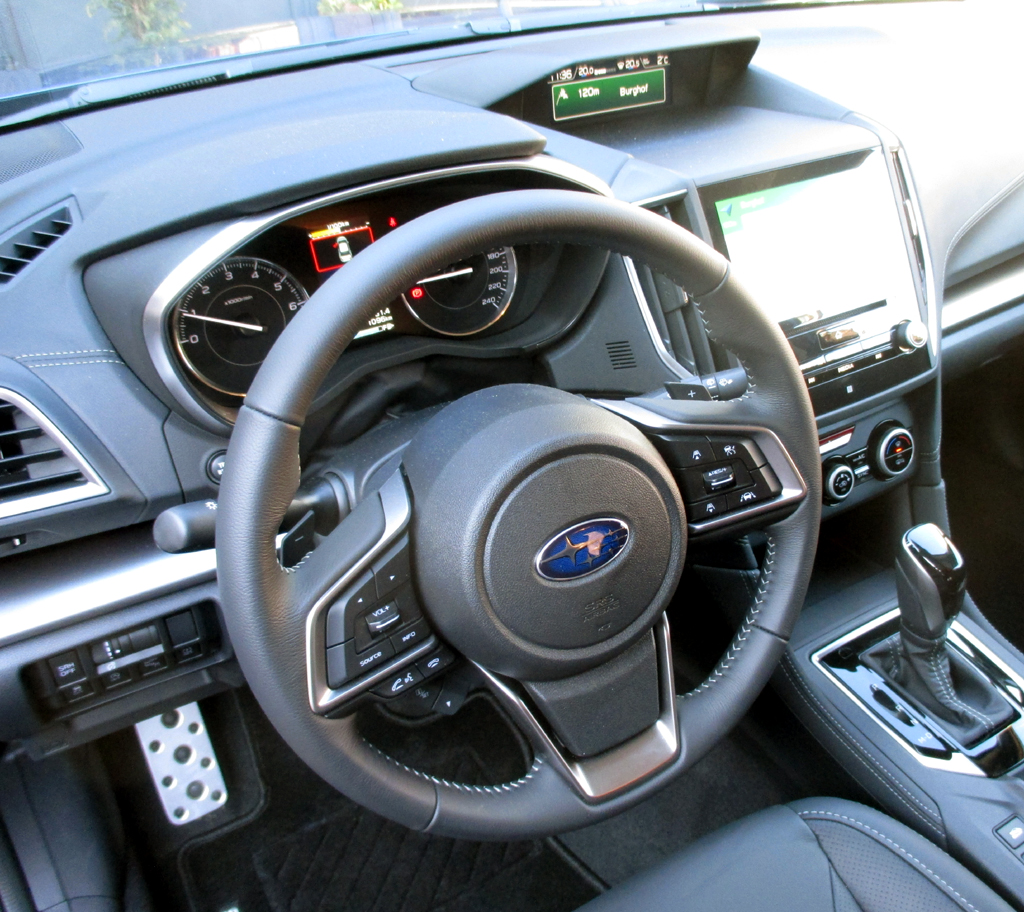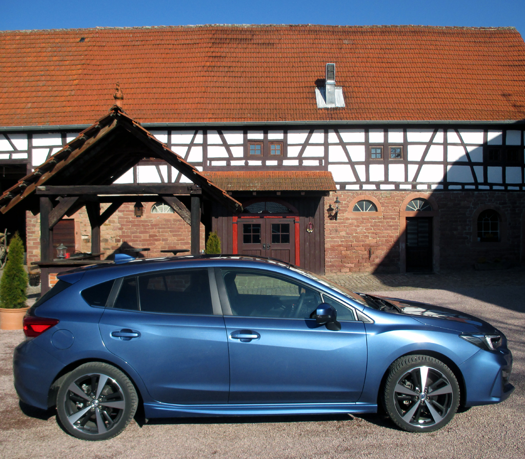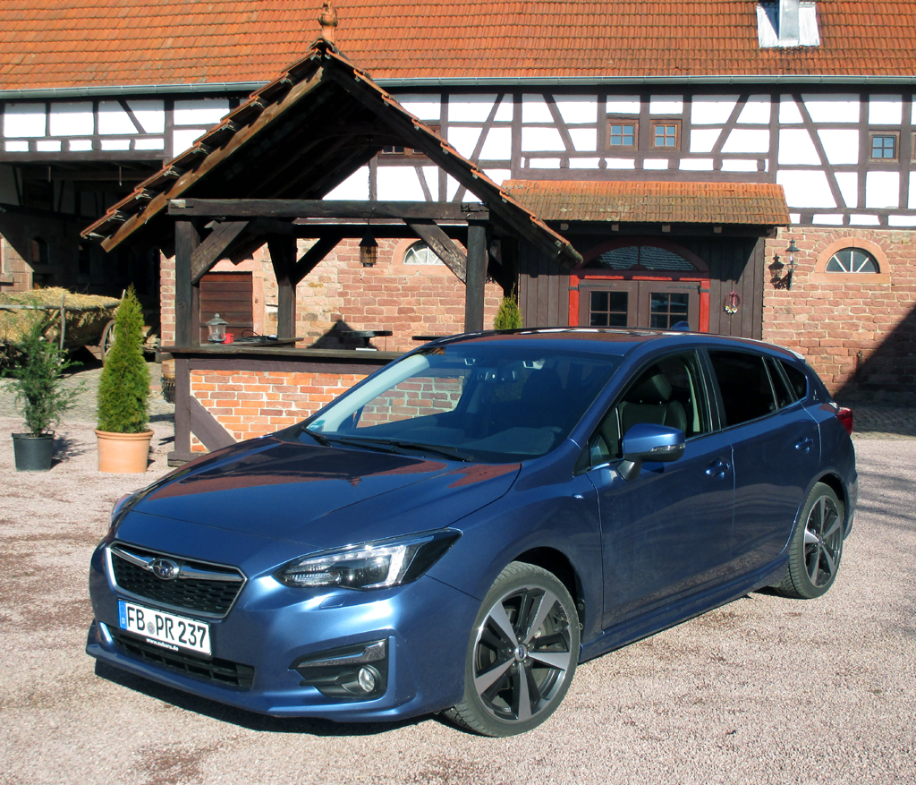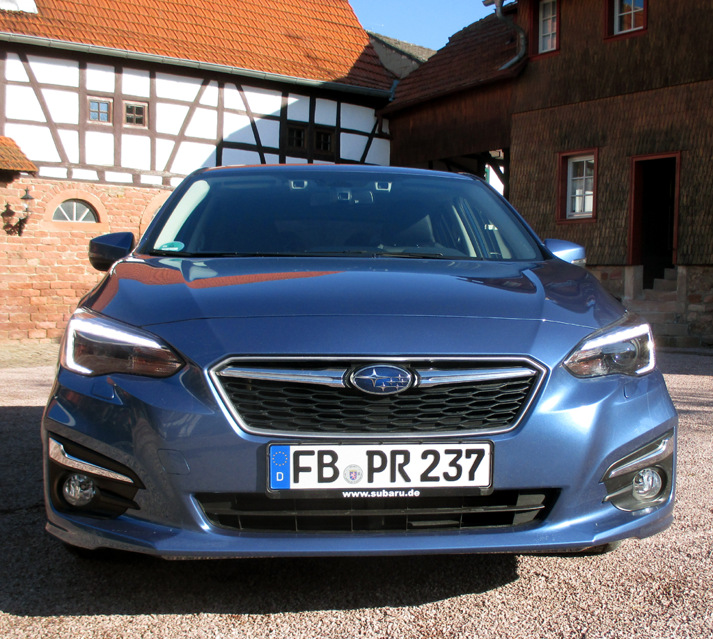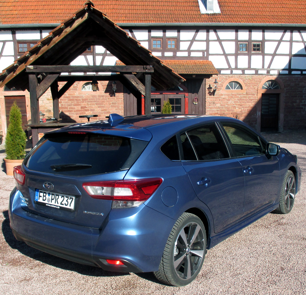 Das Fahren: Wir sind im stärkeren Benziner in Sport-Ausführung unterwegs gewesen. Bei uns hat der Bordcomputer am Ende nach weitgehend moderatem Unterwegssein über Odenwälder Land- und Dorfstraßen 7,6 Liter angezeigt. Das Fahrwerk federt komfortabel, trägt zum unterm Strich stets unaufgeregt-gutmütigen, sicheren Gesamteindruck bei. Neben dem Allrad sorgt der niedrige Schwerpunkt des Boxermotors schon für Spurtreue. Die Spitzenversion ist zudem mit elektrisch geregelter Drehmomentverteilung bestückt, die die Durchzugskraft dorthin leitet, wo sie benötigt wird. Lediglich die Lenkung mit elektronisch gesteuerter Unterstützung könnte noch direktere Rückmeldung geben. Die vorn und hinten innenbelüfteten Scheibenbremsen sorgen für standfeste Verzögerung.