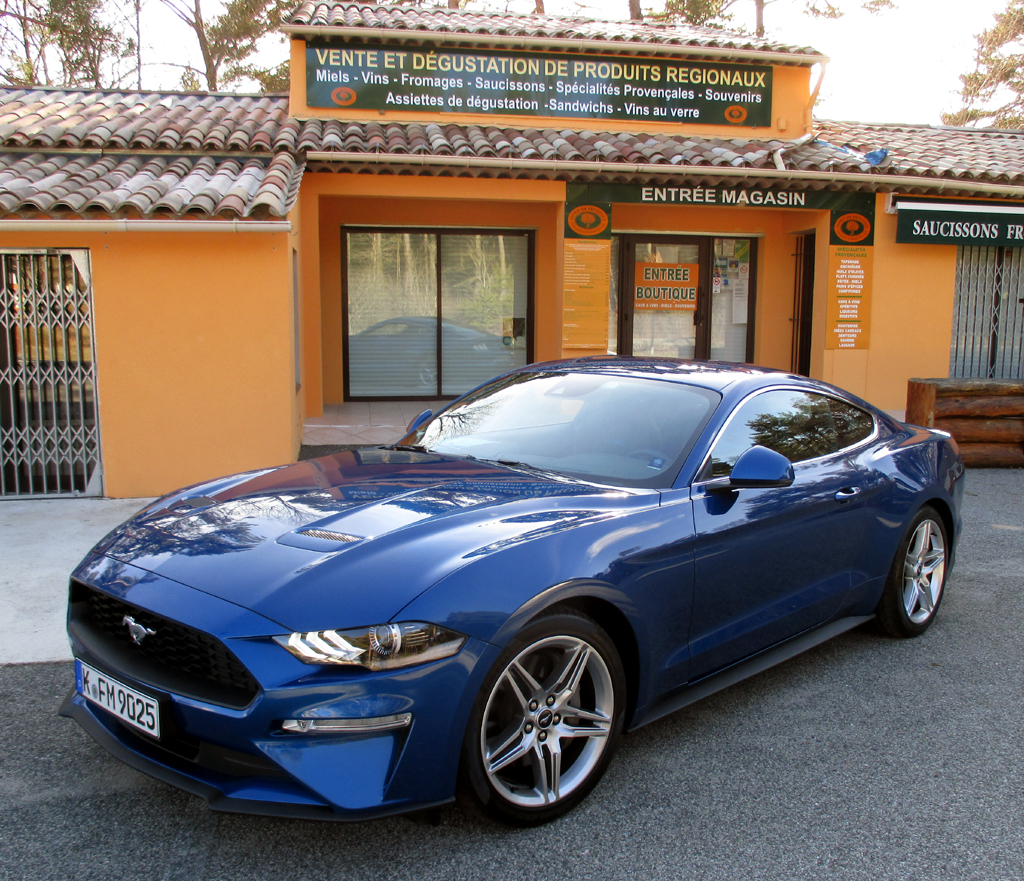 Alles in allem: Die Preise bleiben im Vergleich, nach wie vor ein Wort. Der Vierzylinder ist für die Vernunft, der blubbernde Achtzylinder mehr für die Emotion. Auch dieser Ford, heckangetrieben, nimmt einem dank Elektronik (aber noch klassischer Feststellbremse wohl fürs Driften) vieles, indes nicht alles ab. Man muss gelegentlich noch arbeiten in ihm, etwa wenn es zügiger durch Kurven geht. „Ein Pferd will schließlich geritten werden“, stellt Wolfgang Kopplin jetzt bei der Fahrvorstellung in Tourettes im Hinterland der Provence fest. Der Deutschland-Verkaufschef nennt das Sportcoupé das weltweit meistverkaufte. 2017 hat Ford bei uns immerhin über 5740 Mustang abgesetzt. Beim Verhältnis Vierzylinder/Achtzylinder geht Kopplin prozentual weiter von etwa 20:80 aus, beim Verhältnis Coupé/Cabrio von 55:45, kündigt für August zudem eine Sonderauflage des 464 PS starken Bullitt ab rund 60 000 Euro an. Steve McQueen und der Mustang in dem gleichnamigen Film aus 1968 lassen grüßen! Beides noch Kerle mit Charakter!