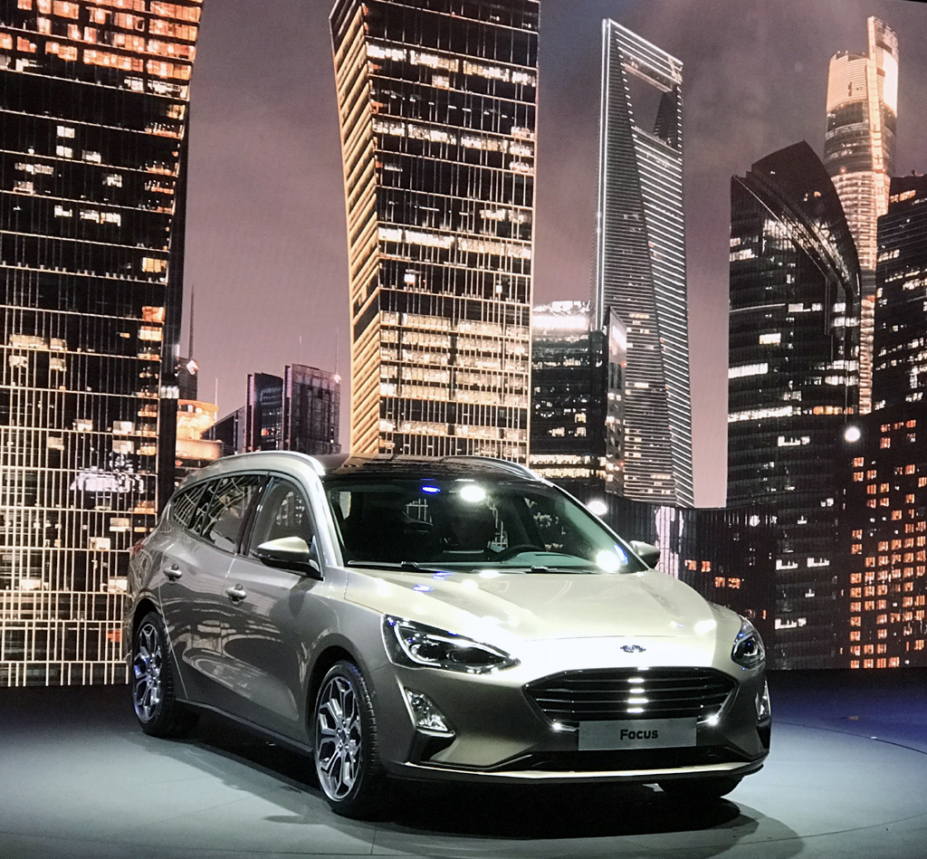 Weltpremiere in London: Ford hat da den nächsten Focus, hier als Turnier genannten Kombi, vorgestellt. Foto: Grebe