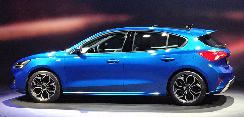 Das Auto: Es ist komplett neu entwickelt worden. Dabei handelt es sich um die vierte Generation. In der VW-Golf- und Opel-Astra-Klasse tritt auch sie zudem in dem bei uns mit am härtesteten umkämpften Segment gegen zahlreiche ausländische Konkurrenten an. Sie läuft in Saarlouis als fünftüriges Fließheck, als nach wie vor Turnier genannter Kombi sowie für einige Märkte außerhalb von Deutschland als viertüriges Stufenheck vom Band. Die Entwickler haben sich bemüht, emotionaleres Design mit verbesserter Aerodynamik, sauberer Verarbeitung, wertigeren Materialen und geräumigerem Innenraum zu verbinden. Der Focus, größerer Radstand, länger und breiter, aber flacher als der Vorgänger, ist die erste Ford-Baureihe, die auf der neuen Segmentplattform des Autobauers basiert. Es steht insgesamt mehr Schulterfreiheit zur Verfügung, hinten dazu noch mehr Kniefreiheit. Das größere Gepäckabteil der Limousine hinter der sensorgesteuerten Heckklappe fasst nun 341 bis 1354, das beim nutzwertigeren Kombi sogar bis zu 1650 Liter.